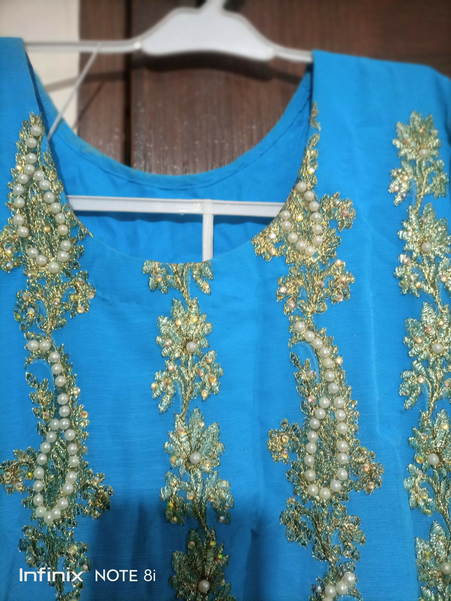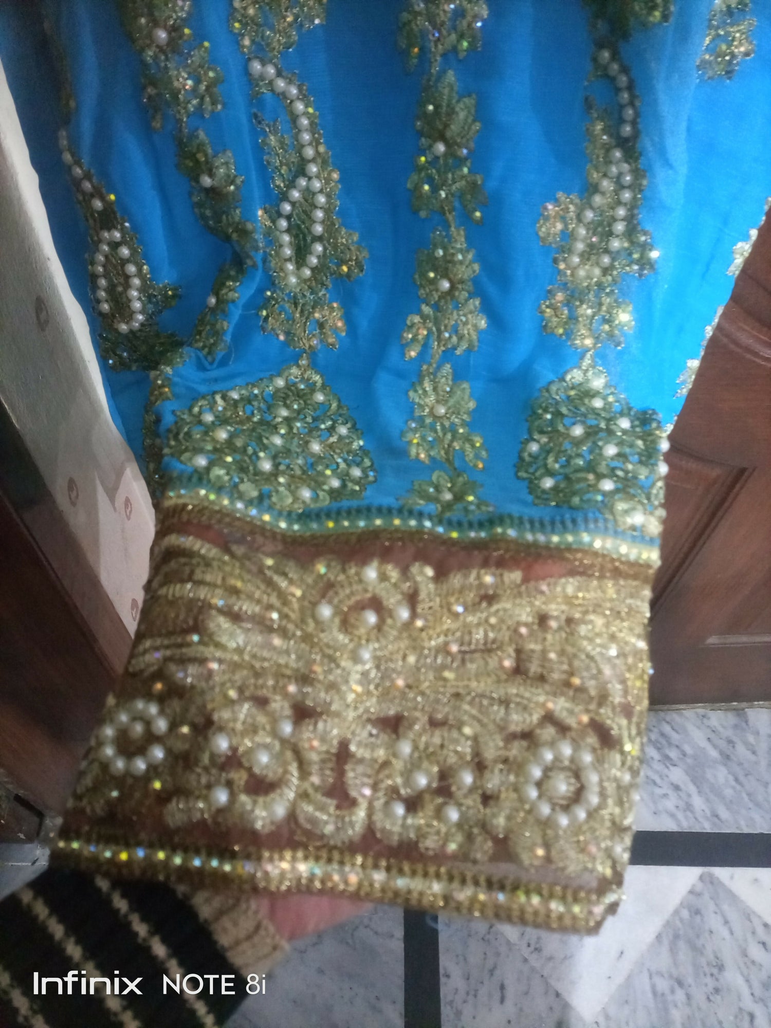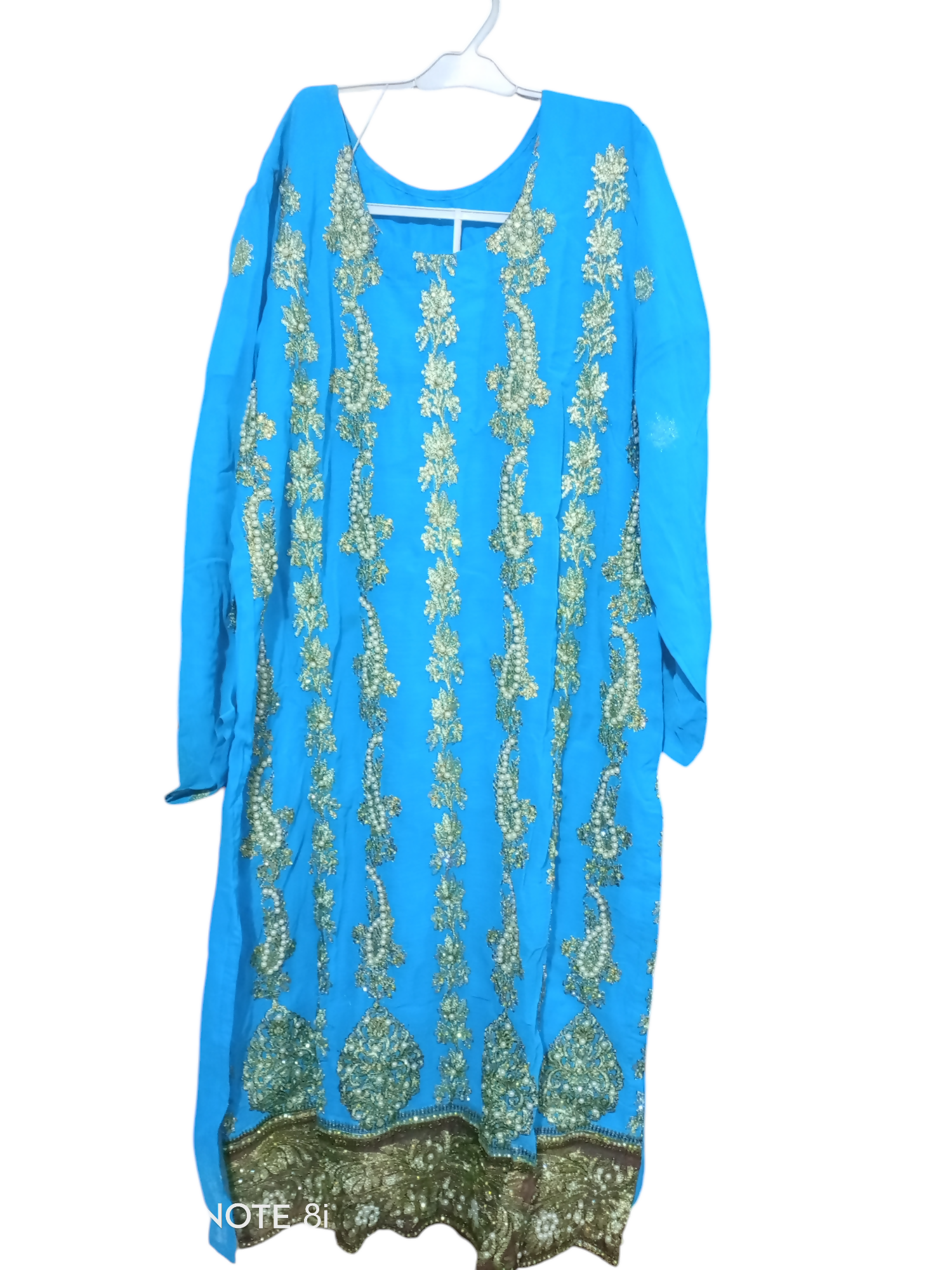 Heavy Embriodered Sky Blue Fancy Suit | Women Locally Made Formals | Medium | Worn Once