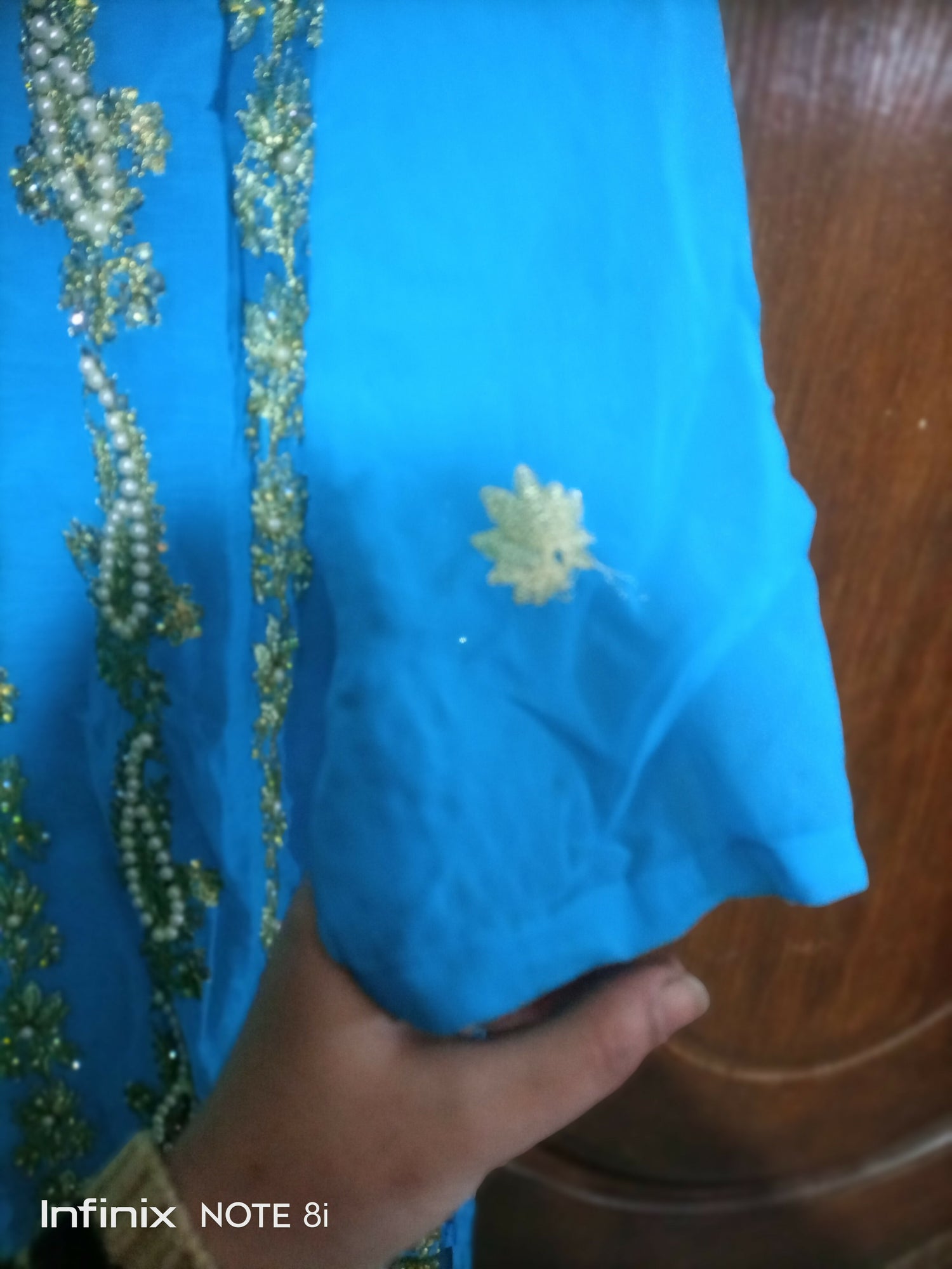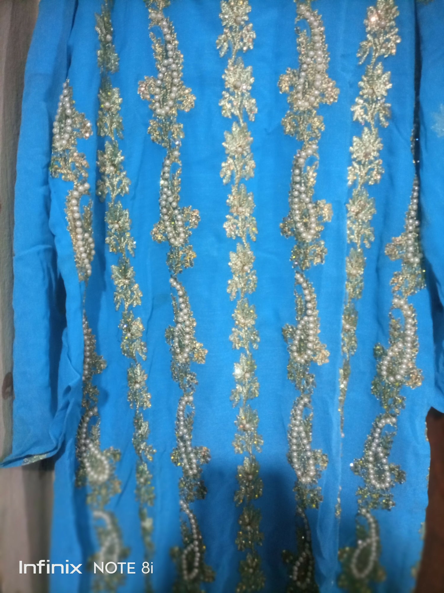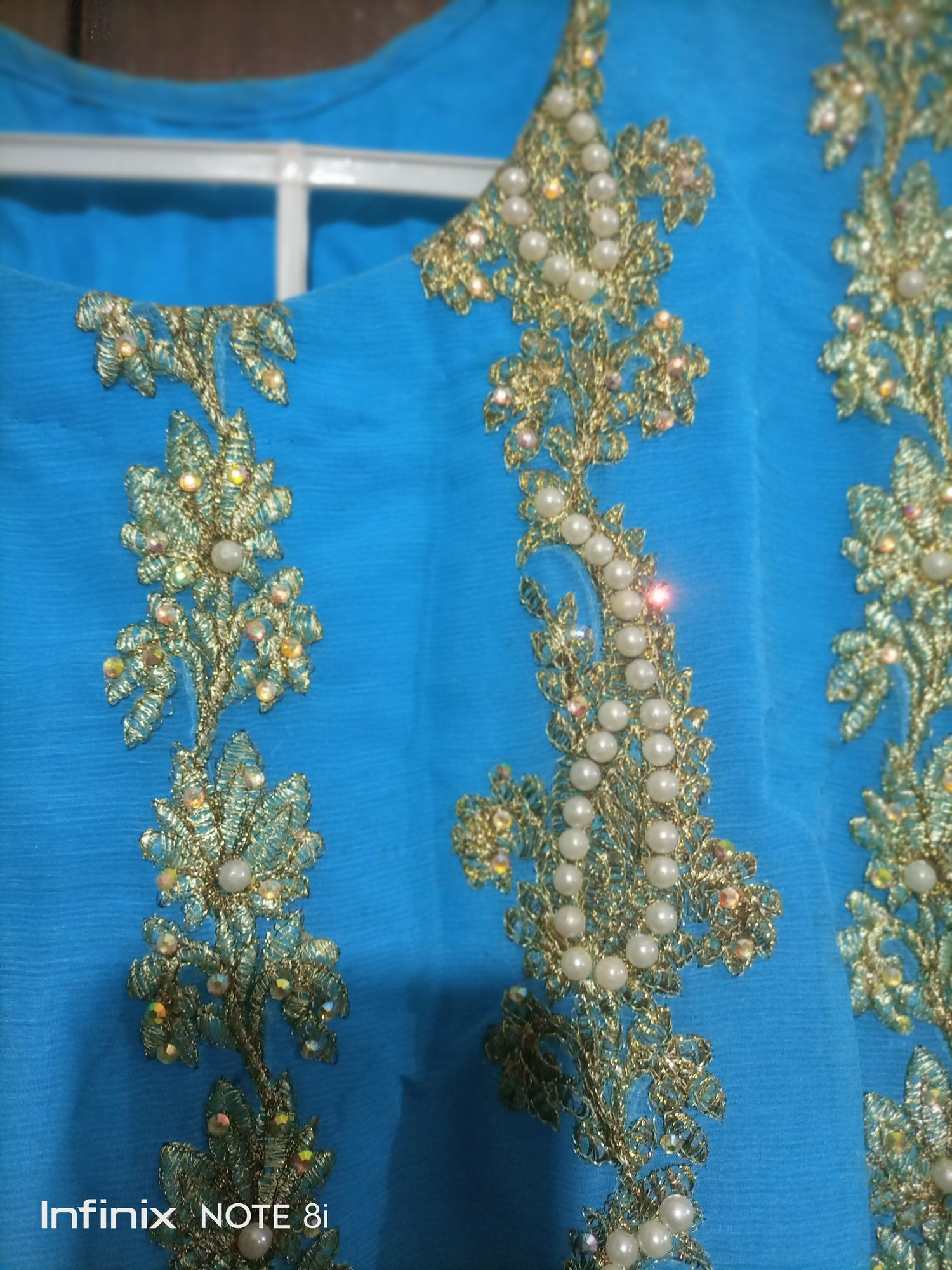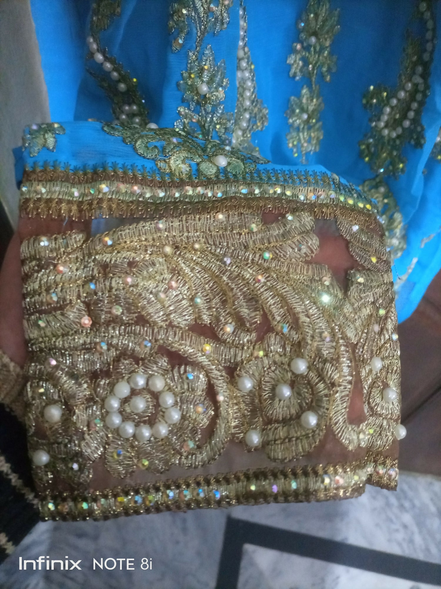 Heavy Embriodered Sky Blue Fancy Suit | Women Locally Made Formals | Medium | Worn Once