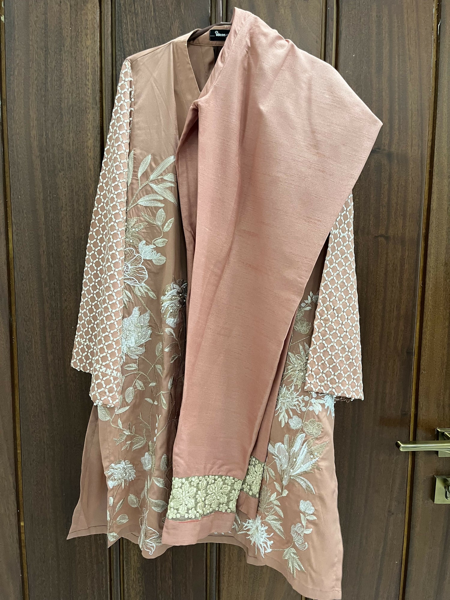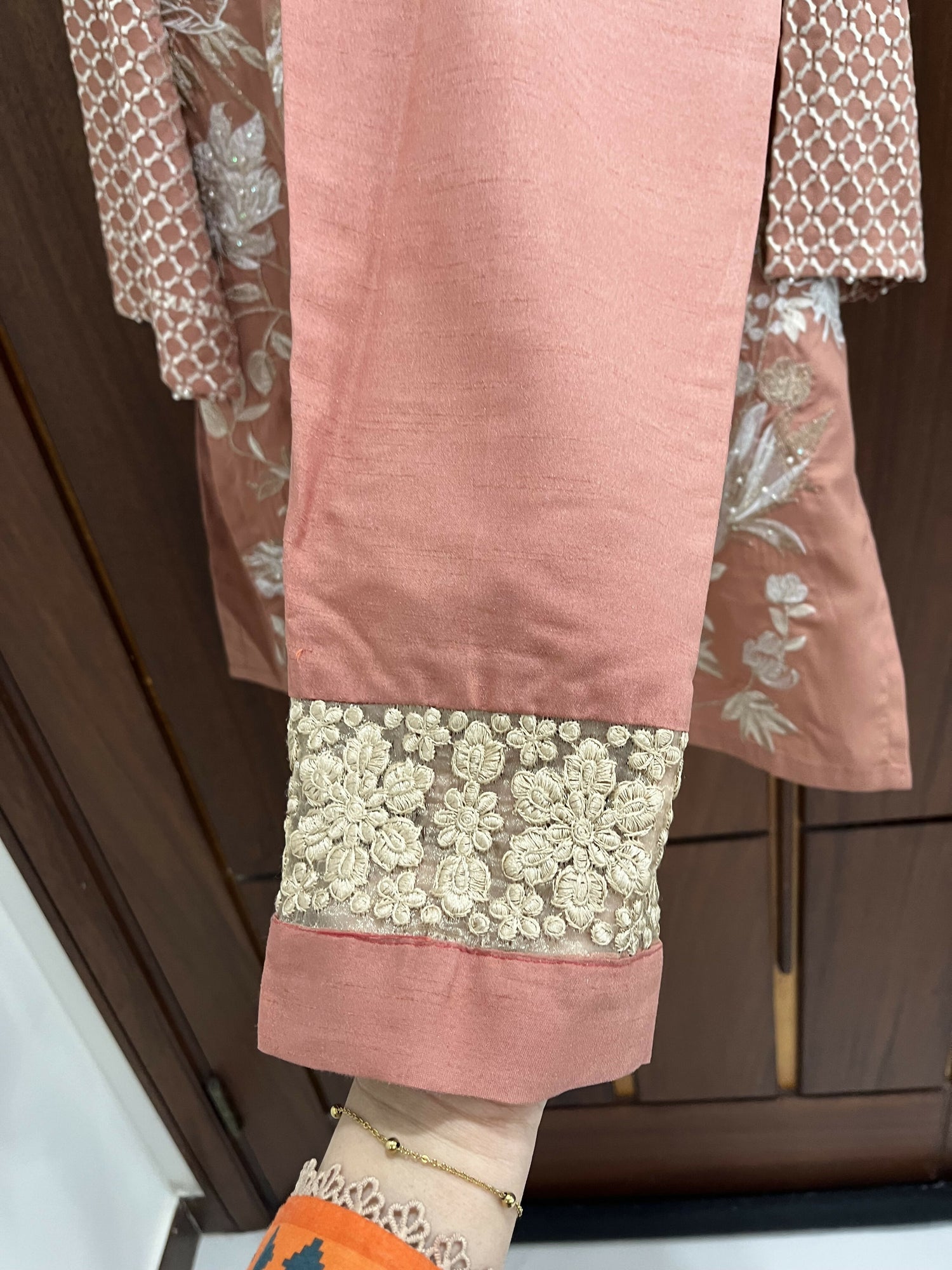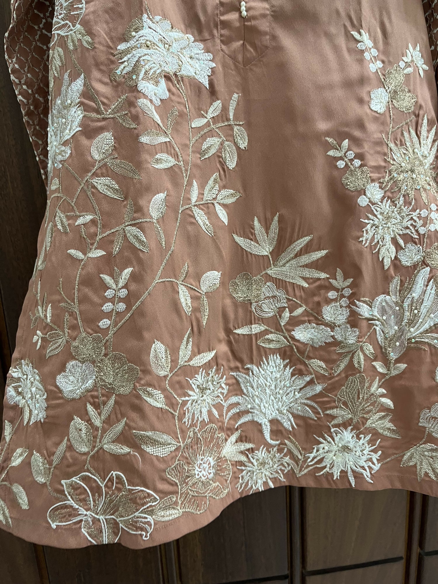 | MATERIAL & MEASUREMENT | Fabric / Material: Cotton Silk Measurements: Chest: 19 Length: 33 Shoulder: 13 Trouser Length: 37 |
