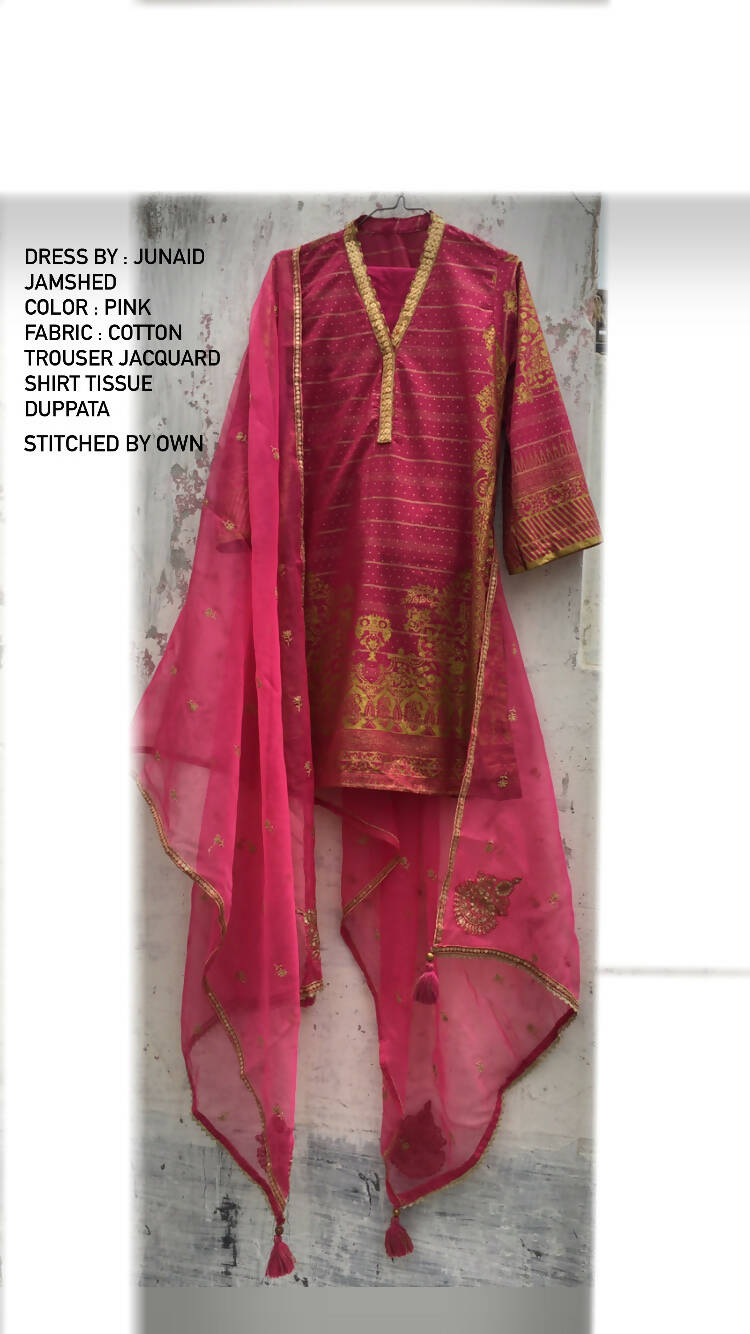 جنید جمشید | گلابی 3 پی سیز لباس | خواتین کا برانڈڈ کرتہ | ایک بار پہنا۔