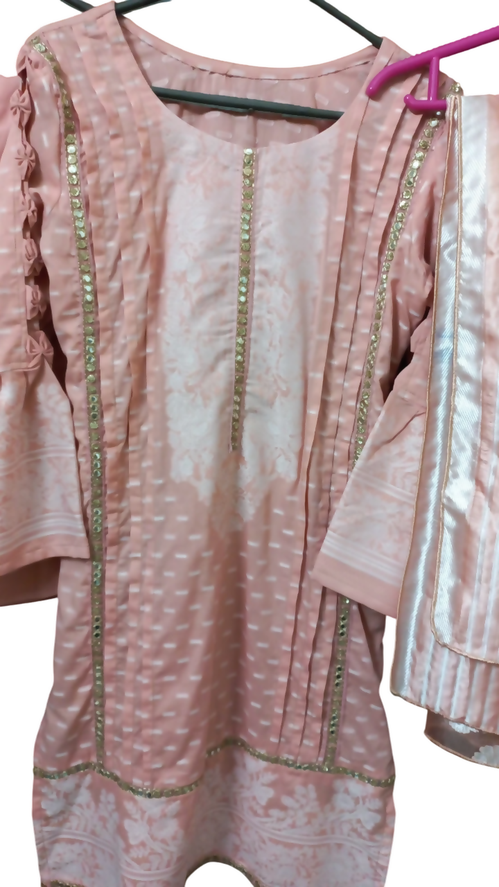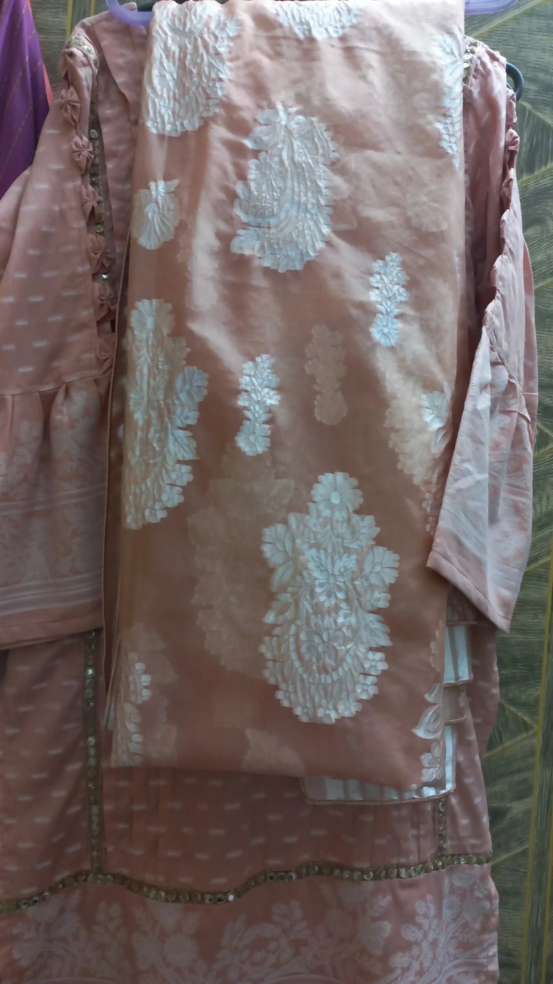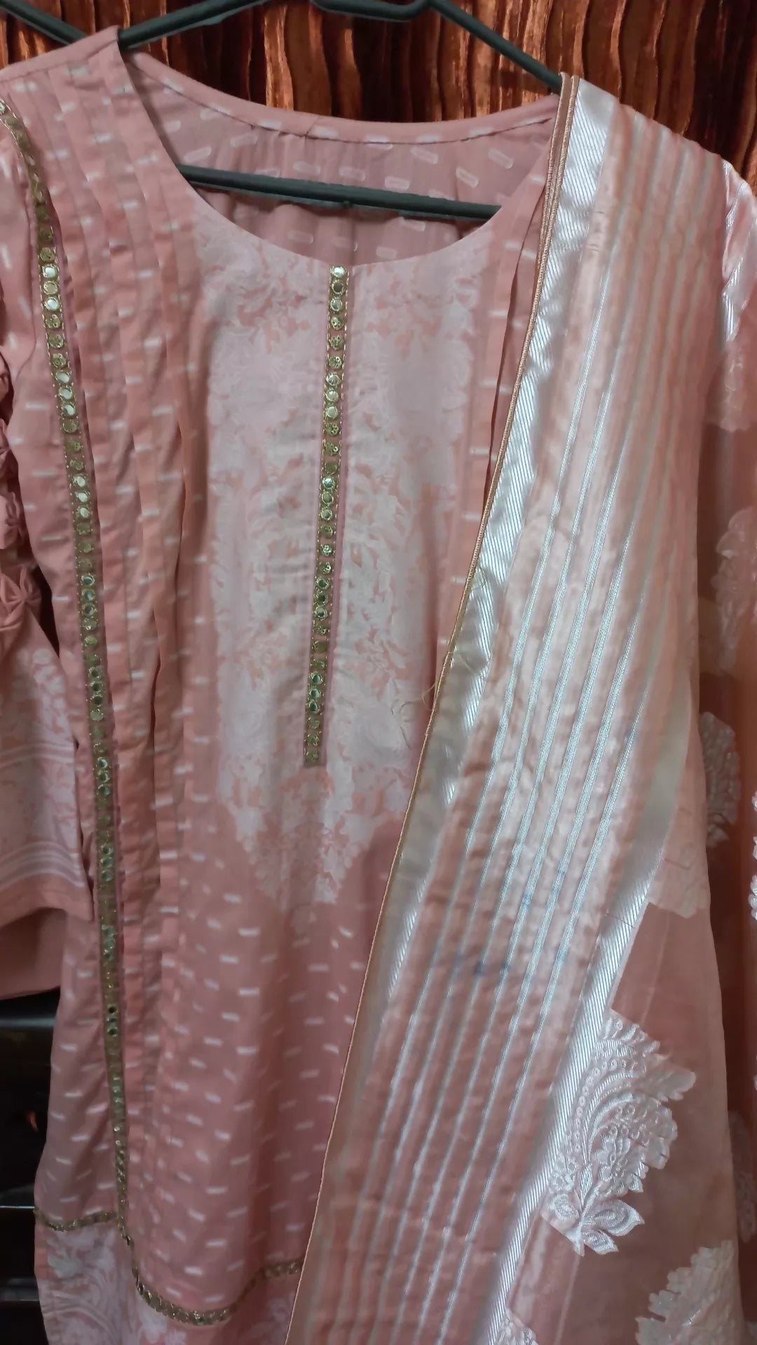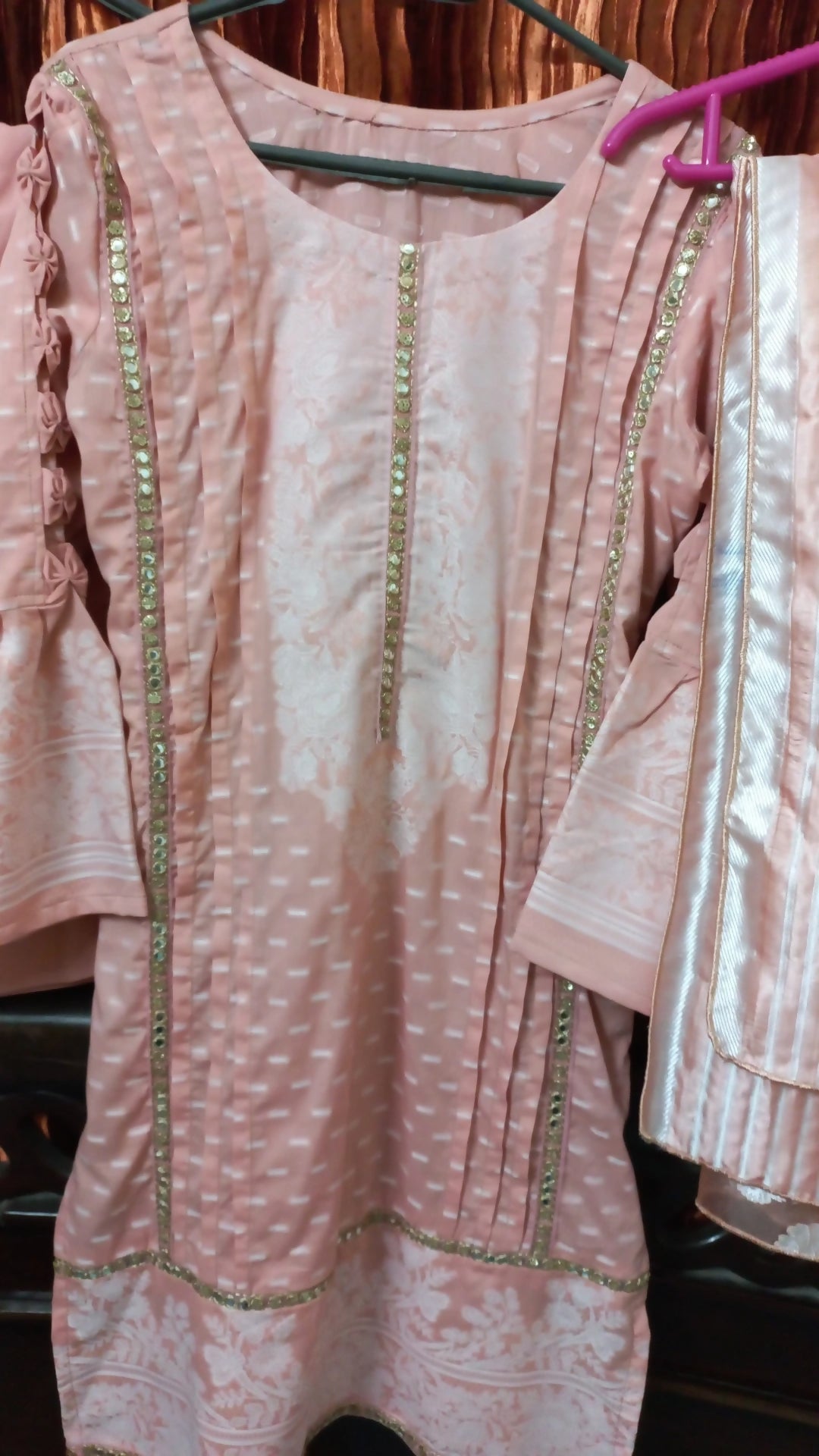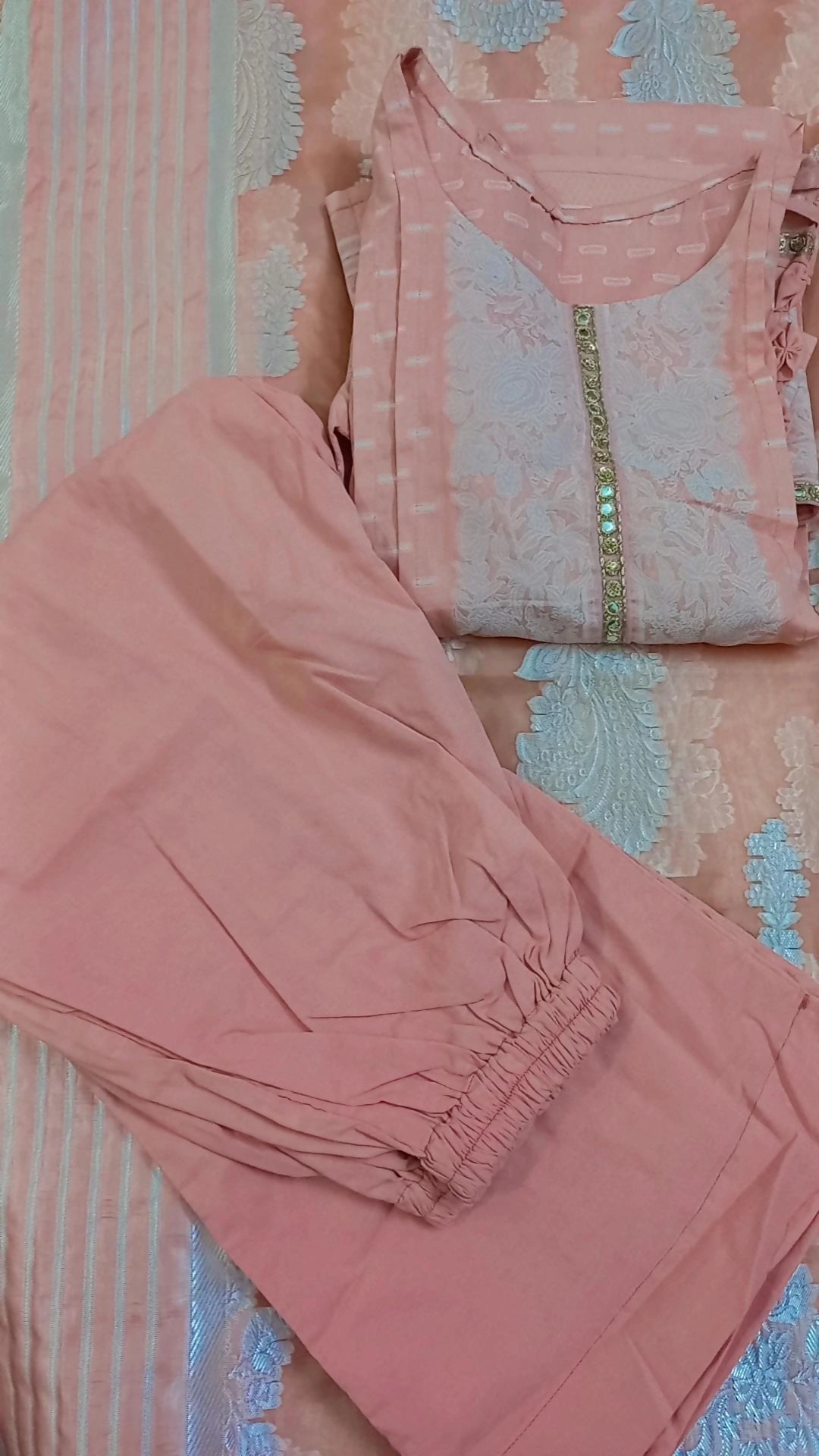 | MATERIAL & MEASUREMENT | Material : Summer jacquard stuff Measurement : Self Stitched Chest 18 Hip 20 Shirt Length 36 Trouser Length 36 |