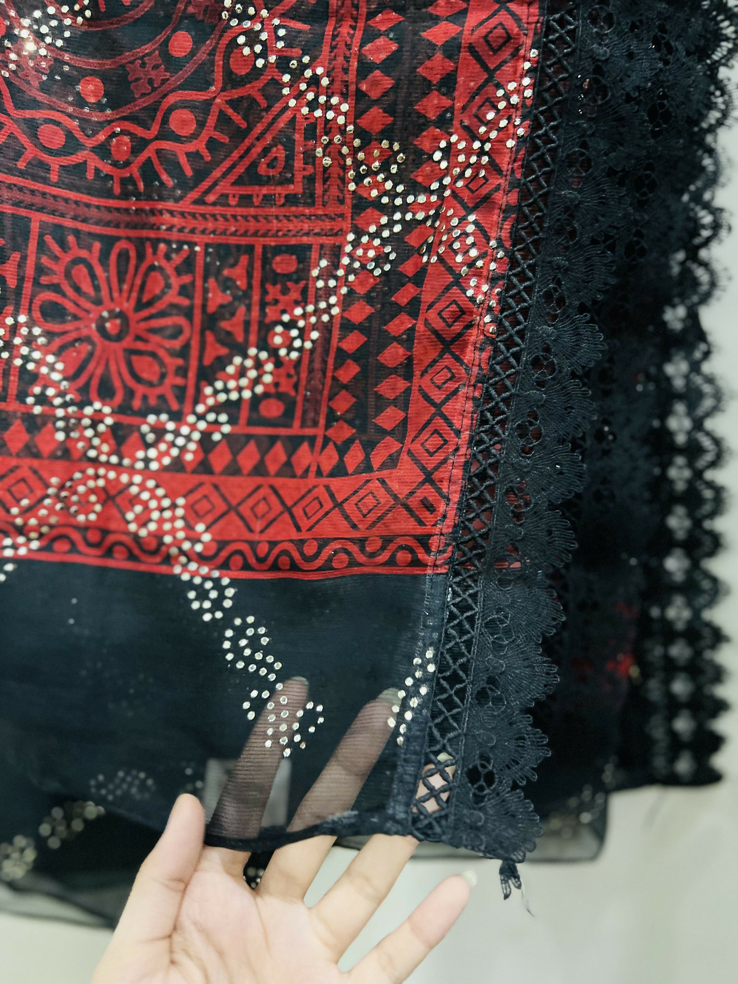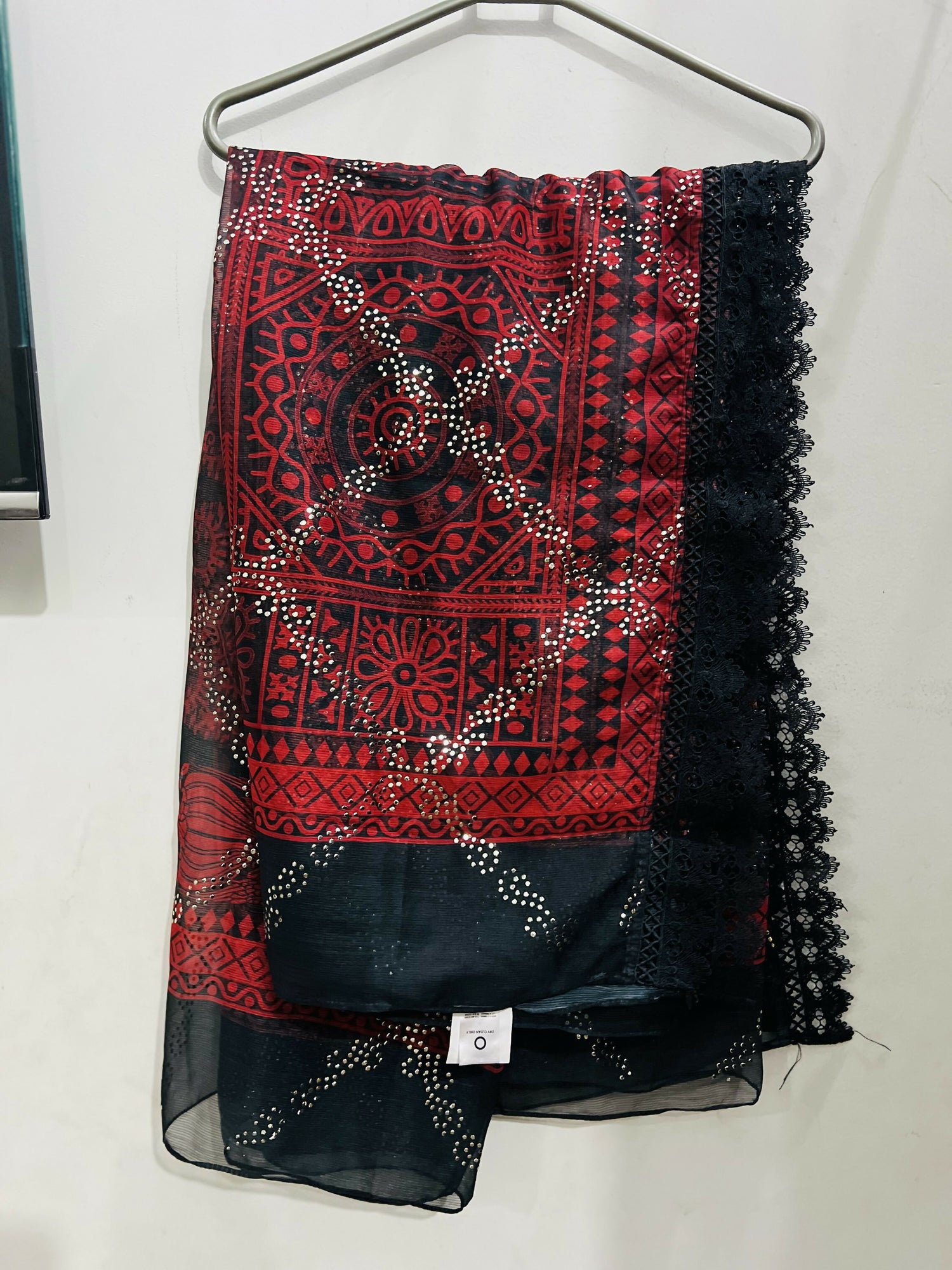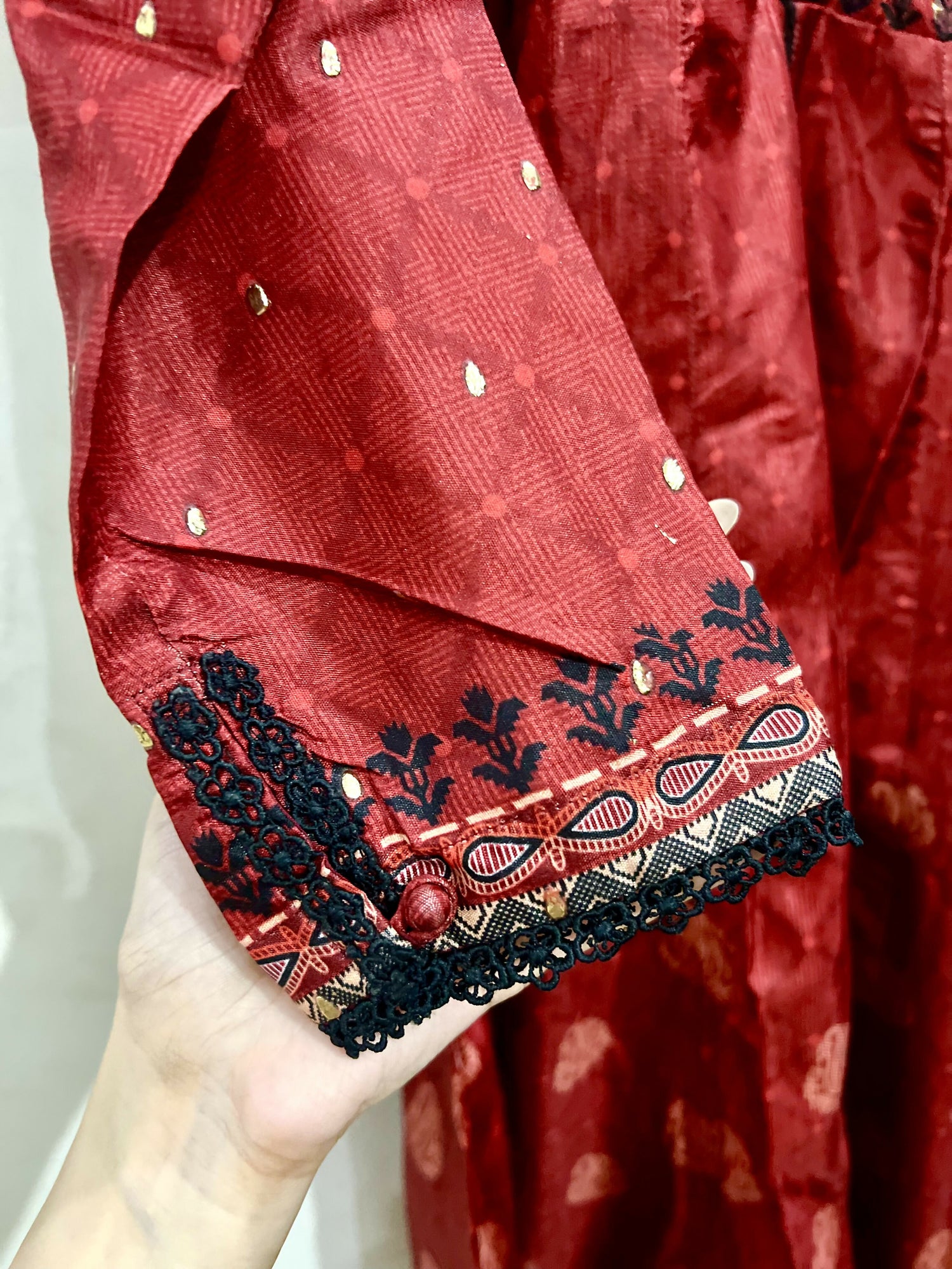 | MATERIAL & MEASUREMENT | Shirt fabric:Silk Shalwar fabric:Cotton silk Dupatta:Silk Sleeve length full |
