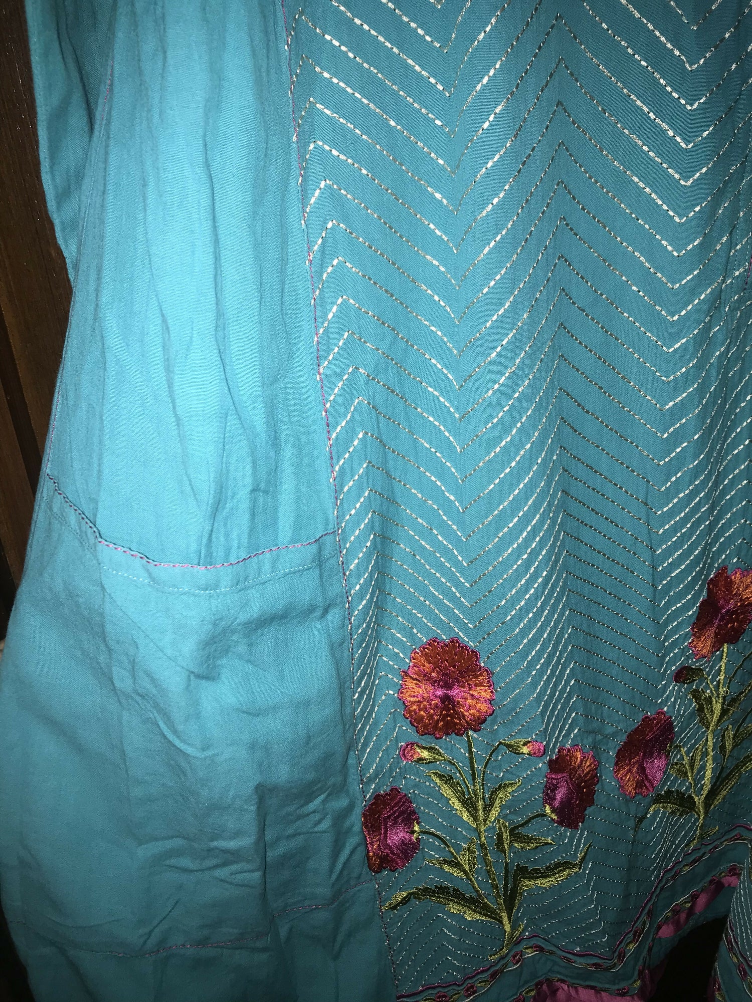 | MATERIAL & MEASUREMENT | Lawn Chest : 17.5 Sleeves : 19 Shoulders : 13.5 Shirt Length : 34 |