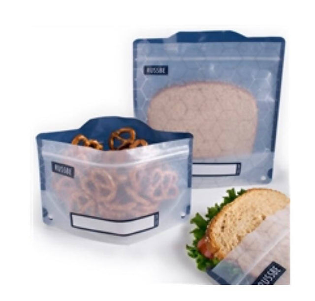 رسبی | کچن | دوبارہ قابل استعمال زپ لاک سنیک بیگ | بلیو | 4 کا پیک | بالکل نیا