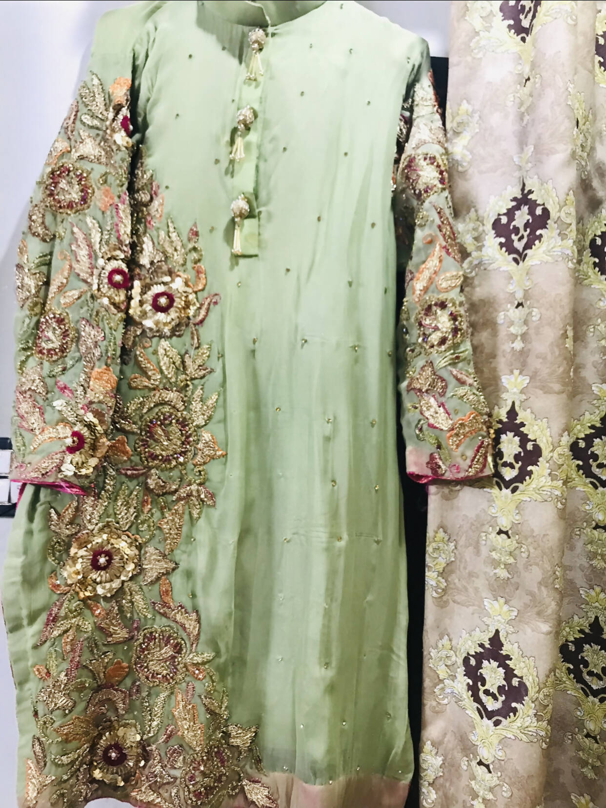 Light green 3 PC | Women Locally Made Formals | Medium | Worn Once is backordered and will ship as soon as it is back in stock.