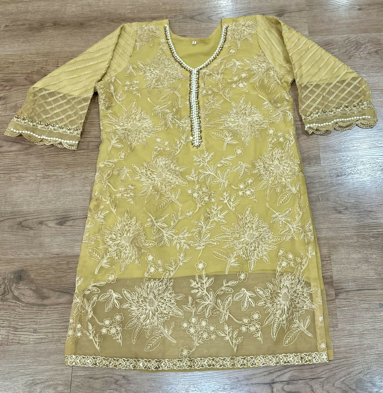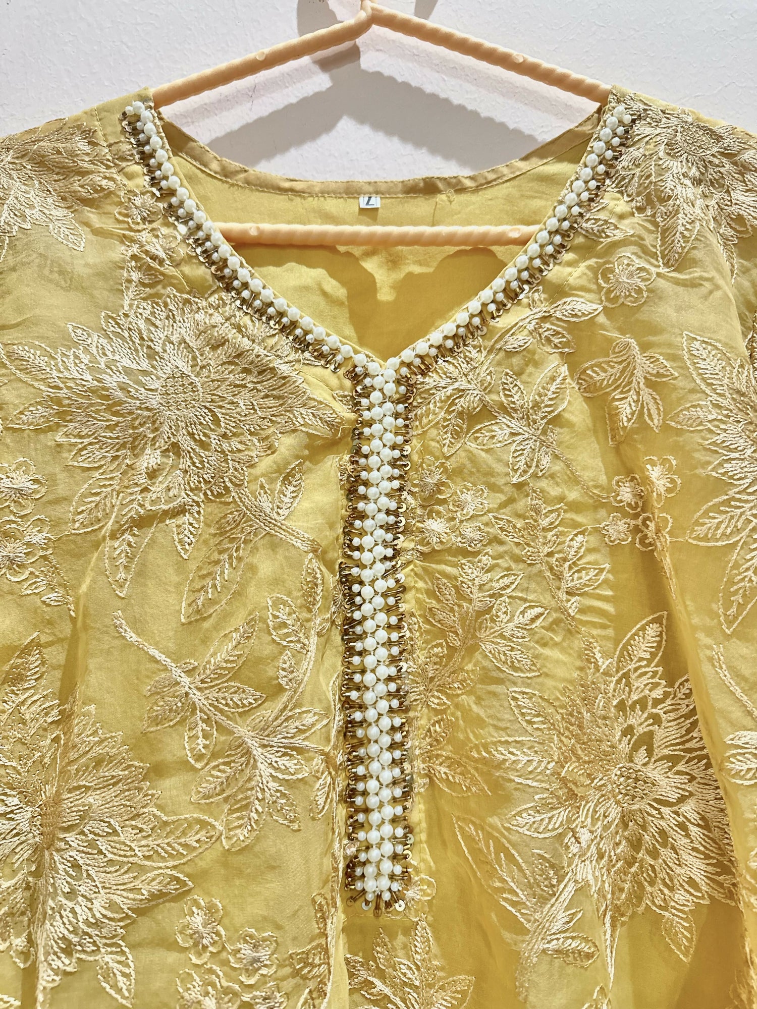 Light yellow embroidered Kurta | Women Locally Made Kurta | Large | Worn Once is backordered and will ship as soon as it is back in stock.