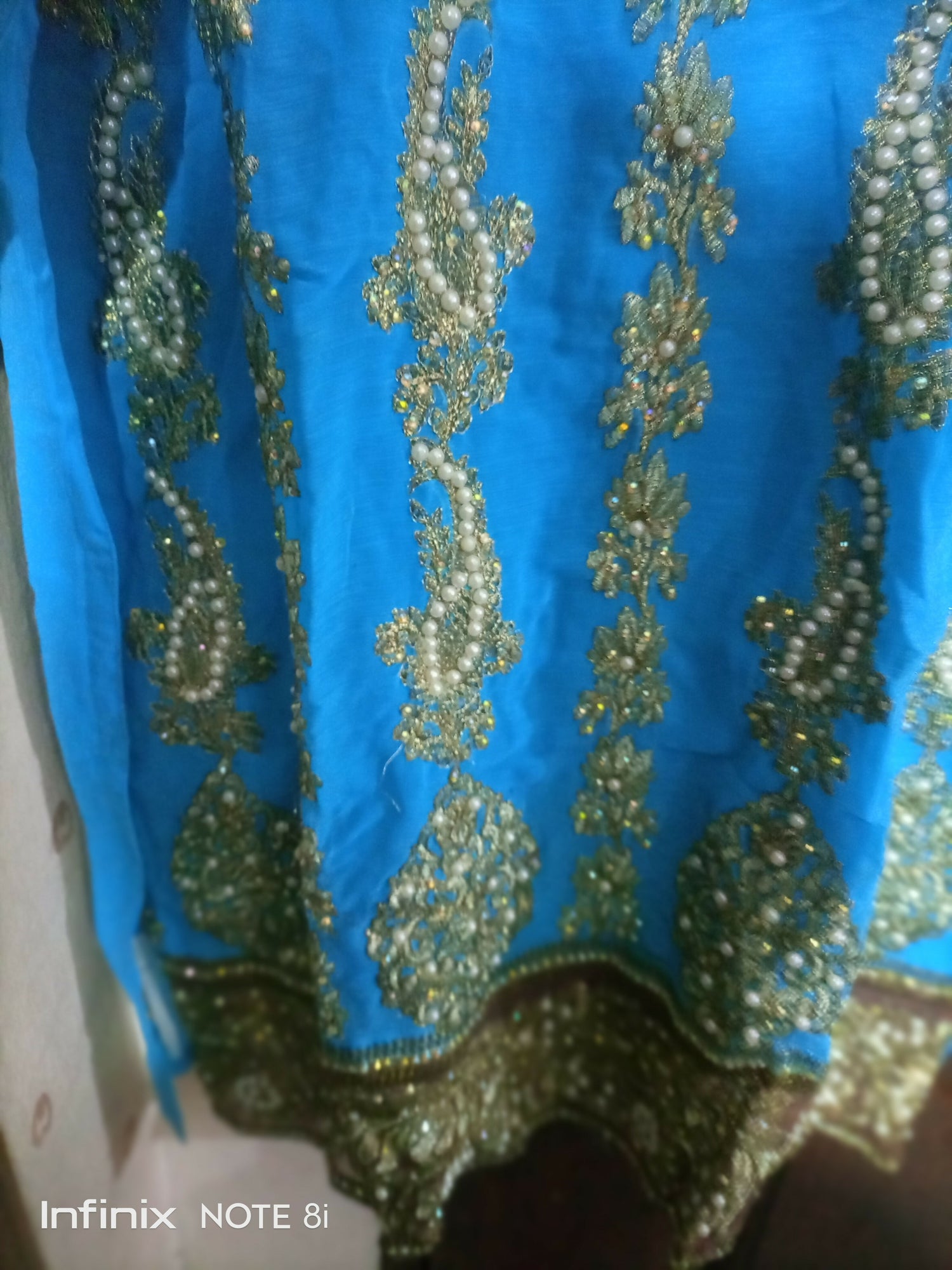 | MATERIAL & MEASUREMENT | Material: Banarsi Measurements: Shoulder: 16 Chest: 19 Back: 18 Length: 42 Trouser: 37 |