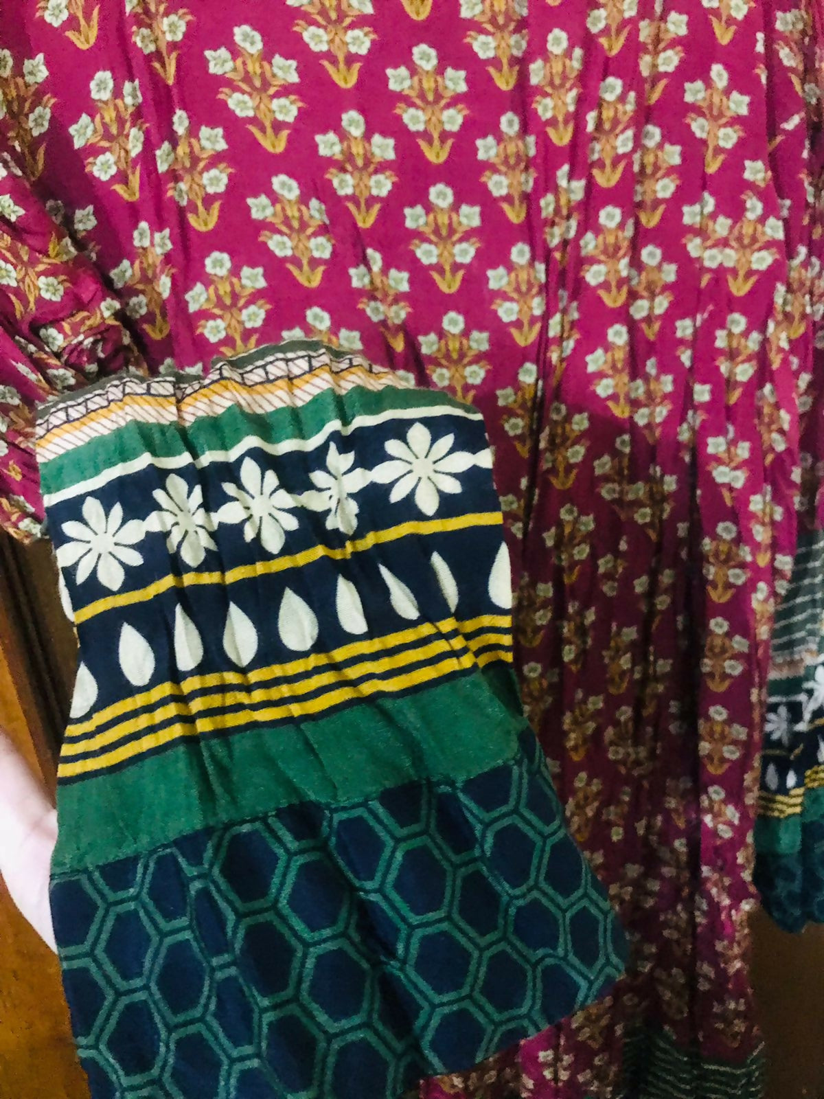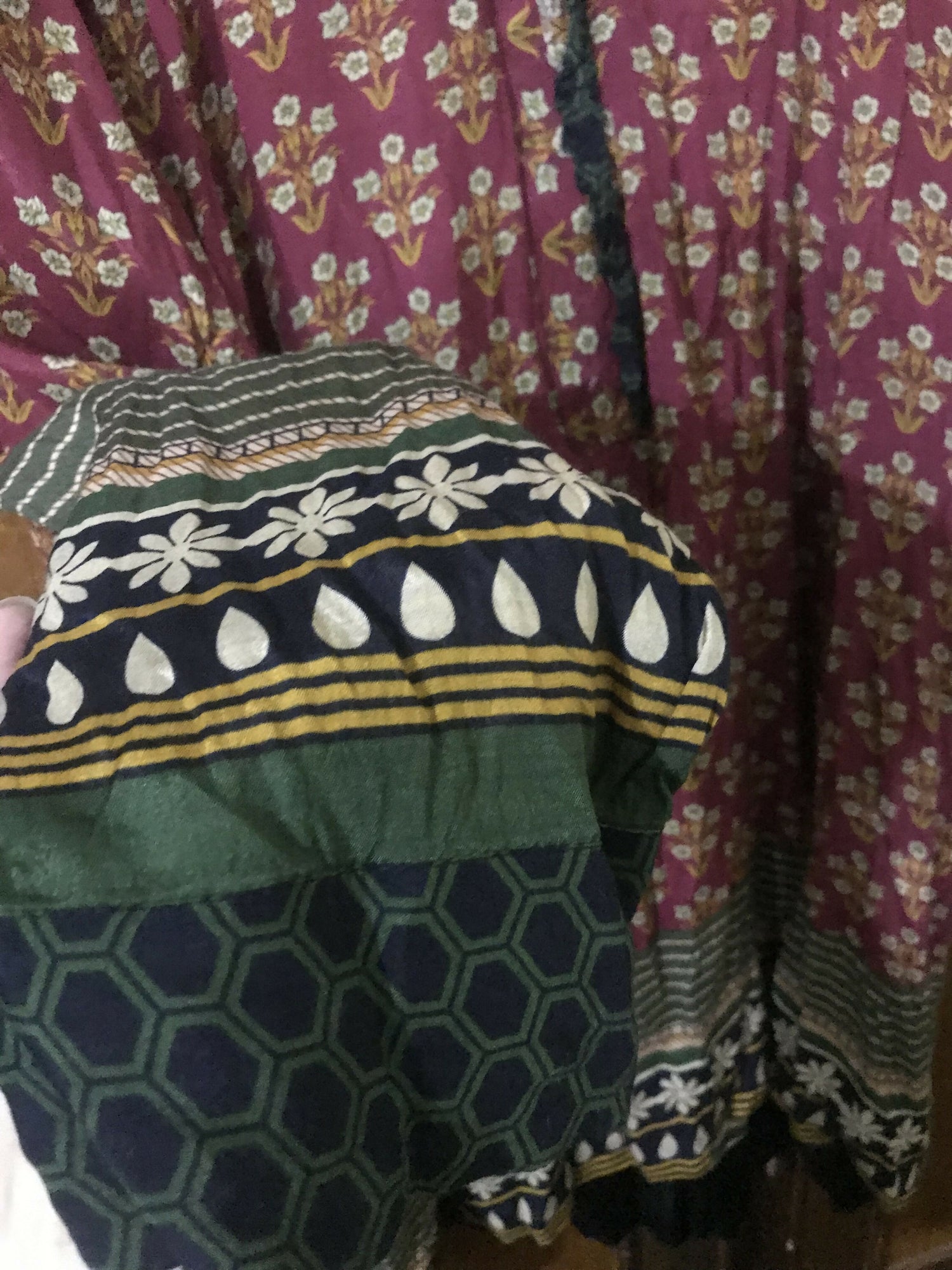 | MATERIAL & MEASUREMENT | Size: large Stuff: silk Full length34 sleeves 20 chest 22 waist 23 shoulders 16 hips 26 armhole 9 |