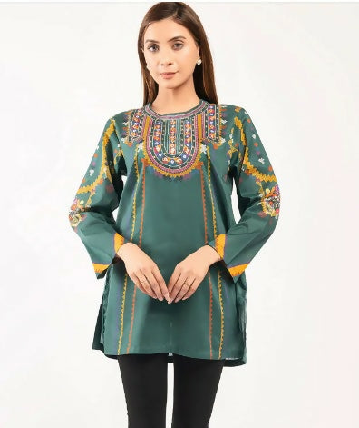 | MATERIAL & MEASUREMENT | Fabric: Lawn Size : Small Measurements : Length : 30 Shoulder: 15 Arms: 21 Chest: 19 |
