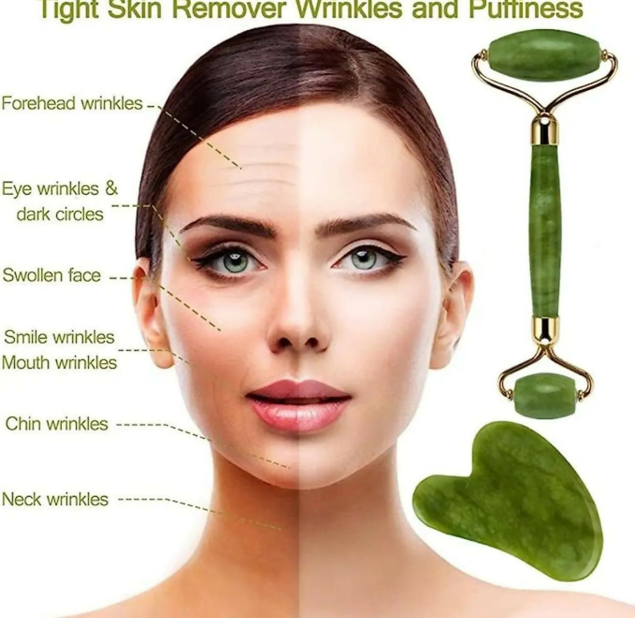 Marble Jade Roller With Gua Sha Stone | Women Beauty | Brand New