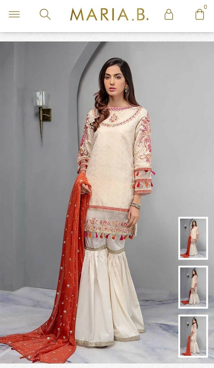 Maria B | Offwhite suit | Women Branded Formals | Medium | Worn Once is backordered and will ship as soon as it is back in stock.
