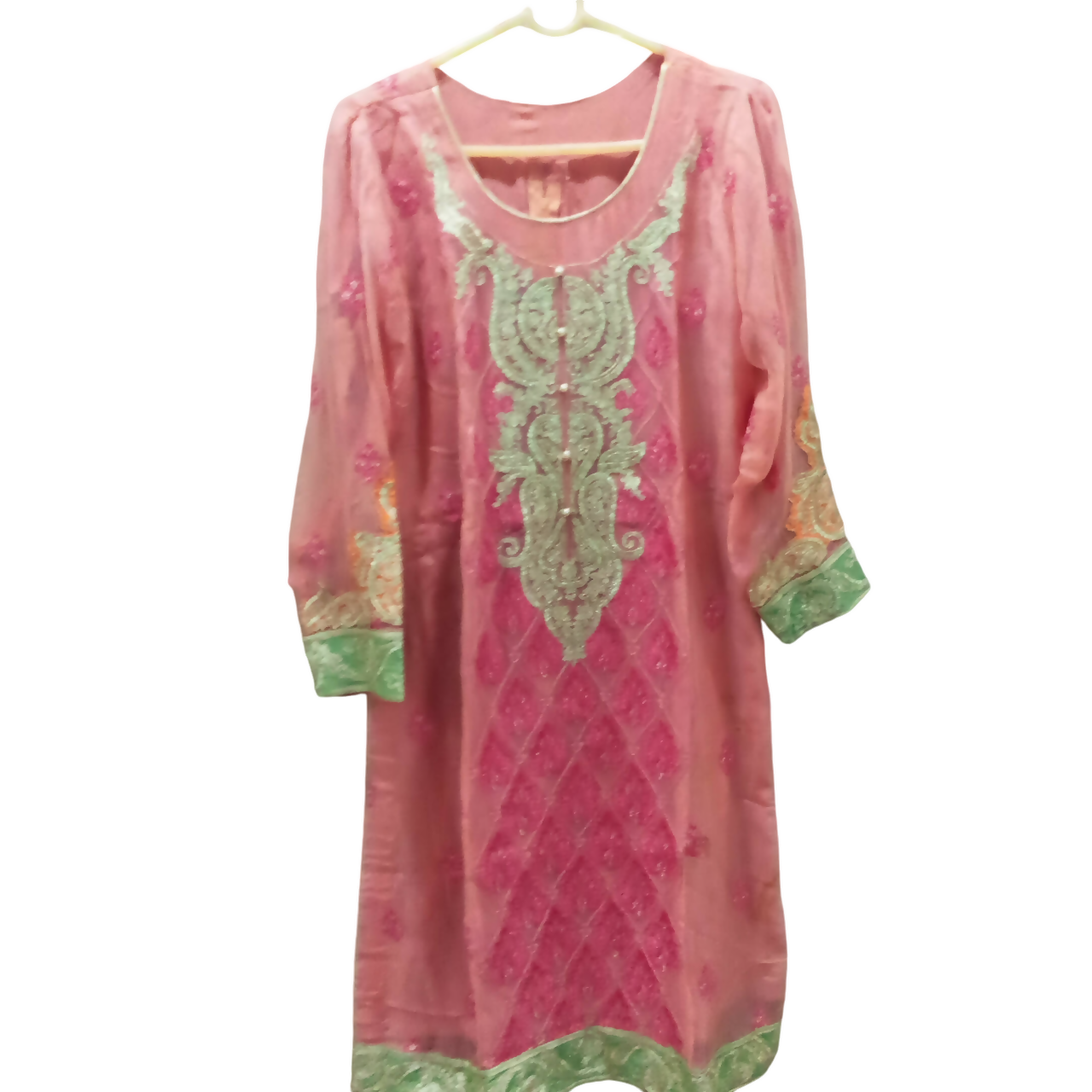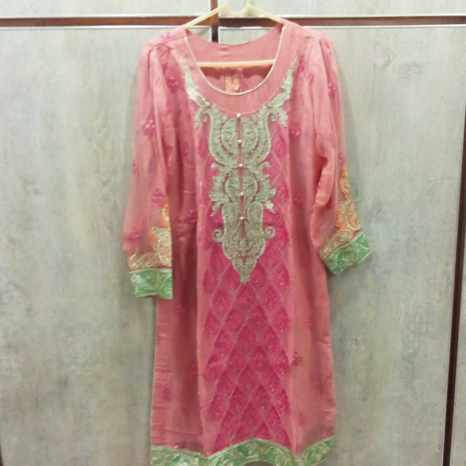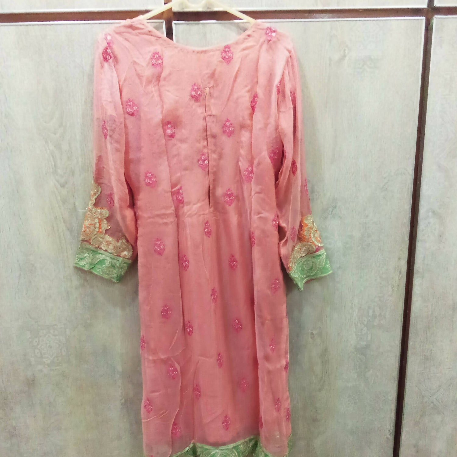 MATERIAL & MEASUREMENT Fabric chiffon Shirt Length 42 Shalwar length 40 Shirt chest 21 Sleeves 21 Shoulders 17.5
