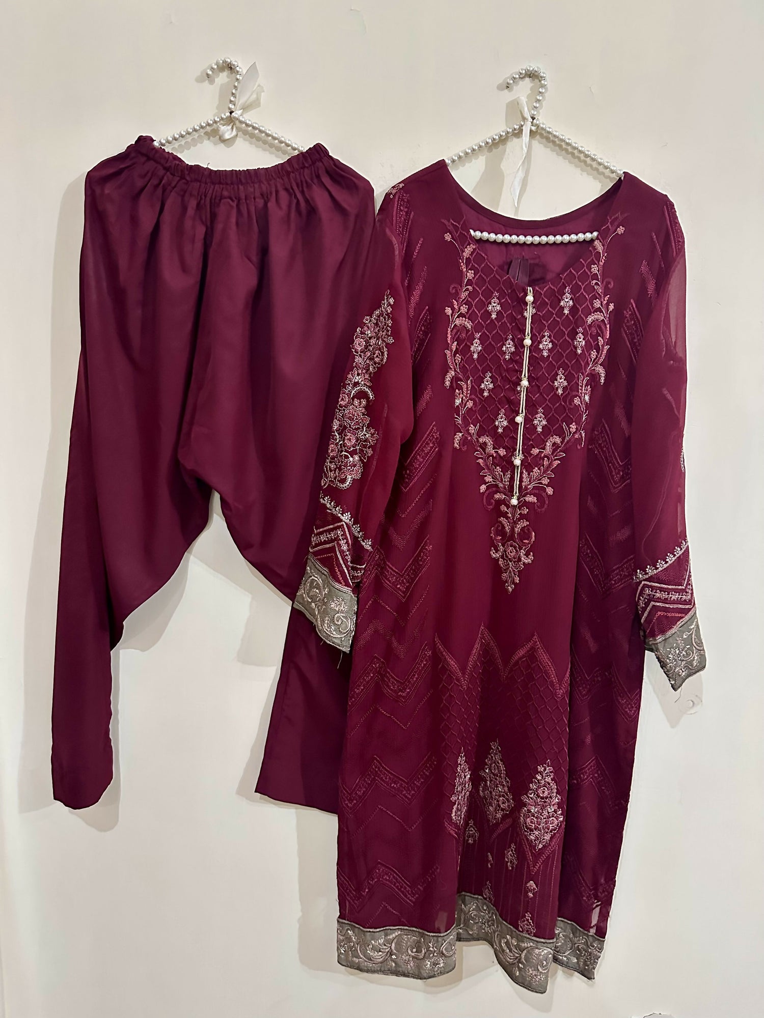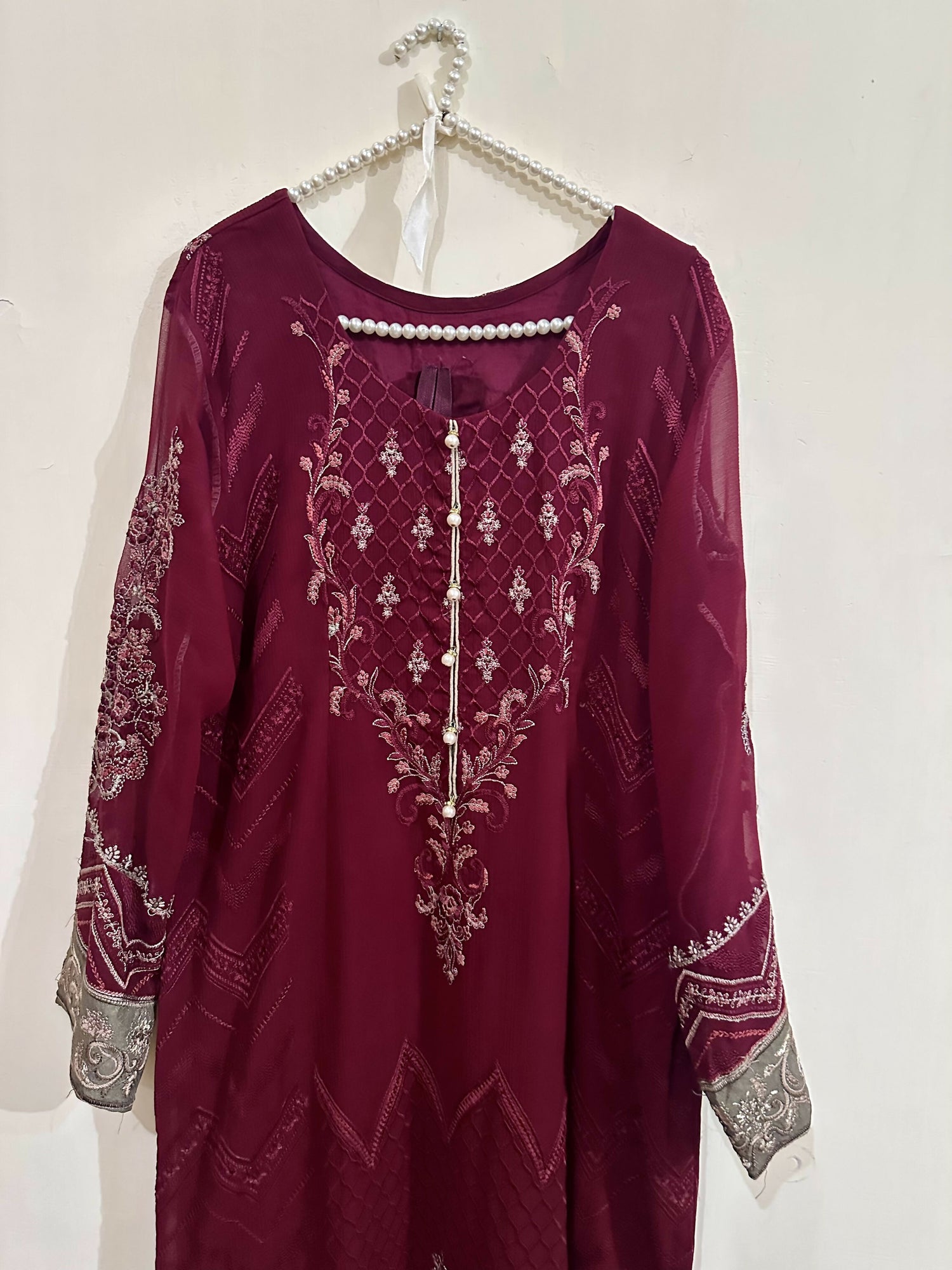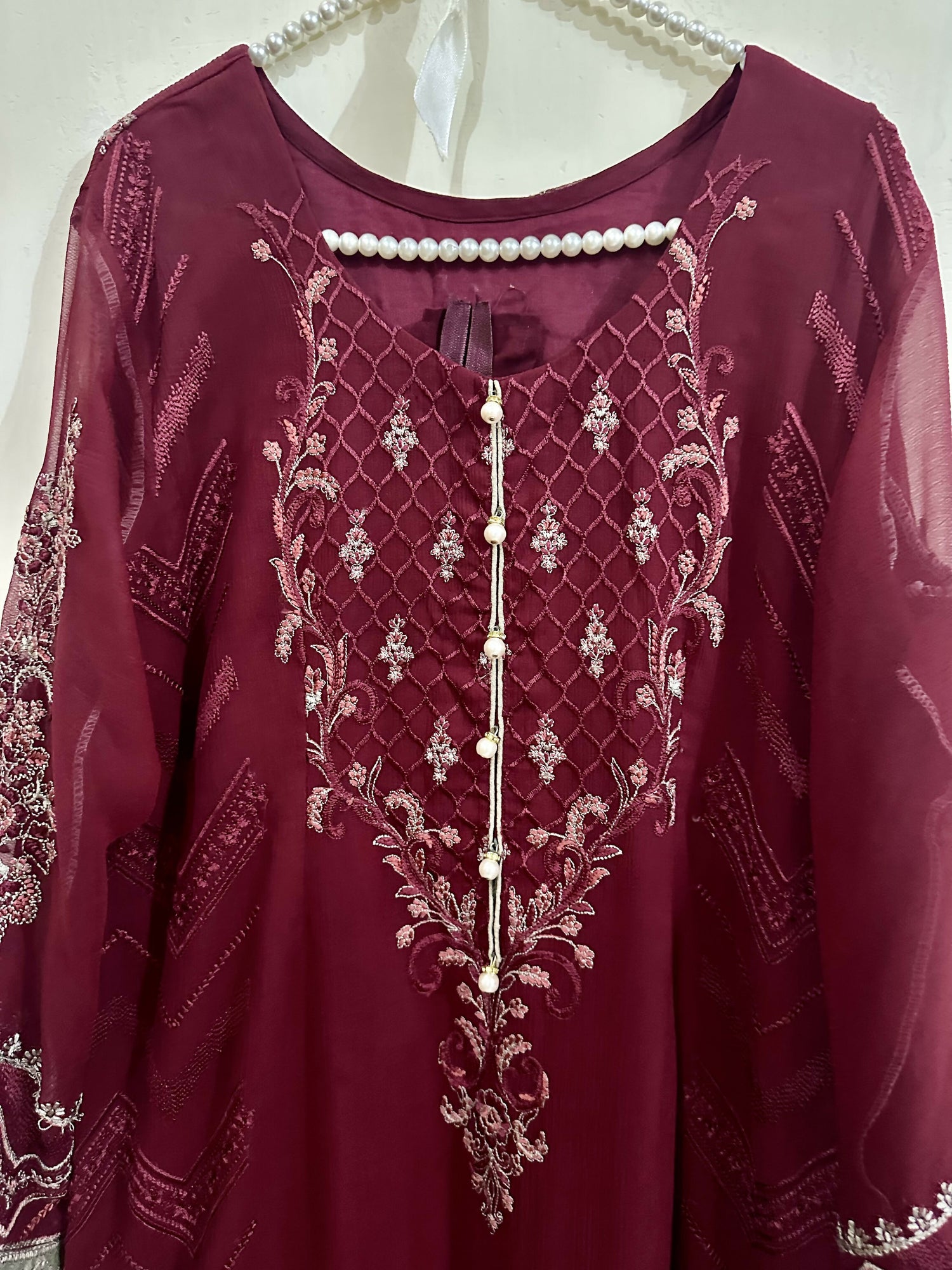 Fabric / Material: embroidered chiffon dress with embroidered dupatta