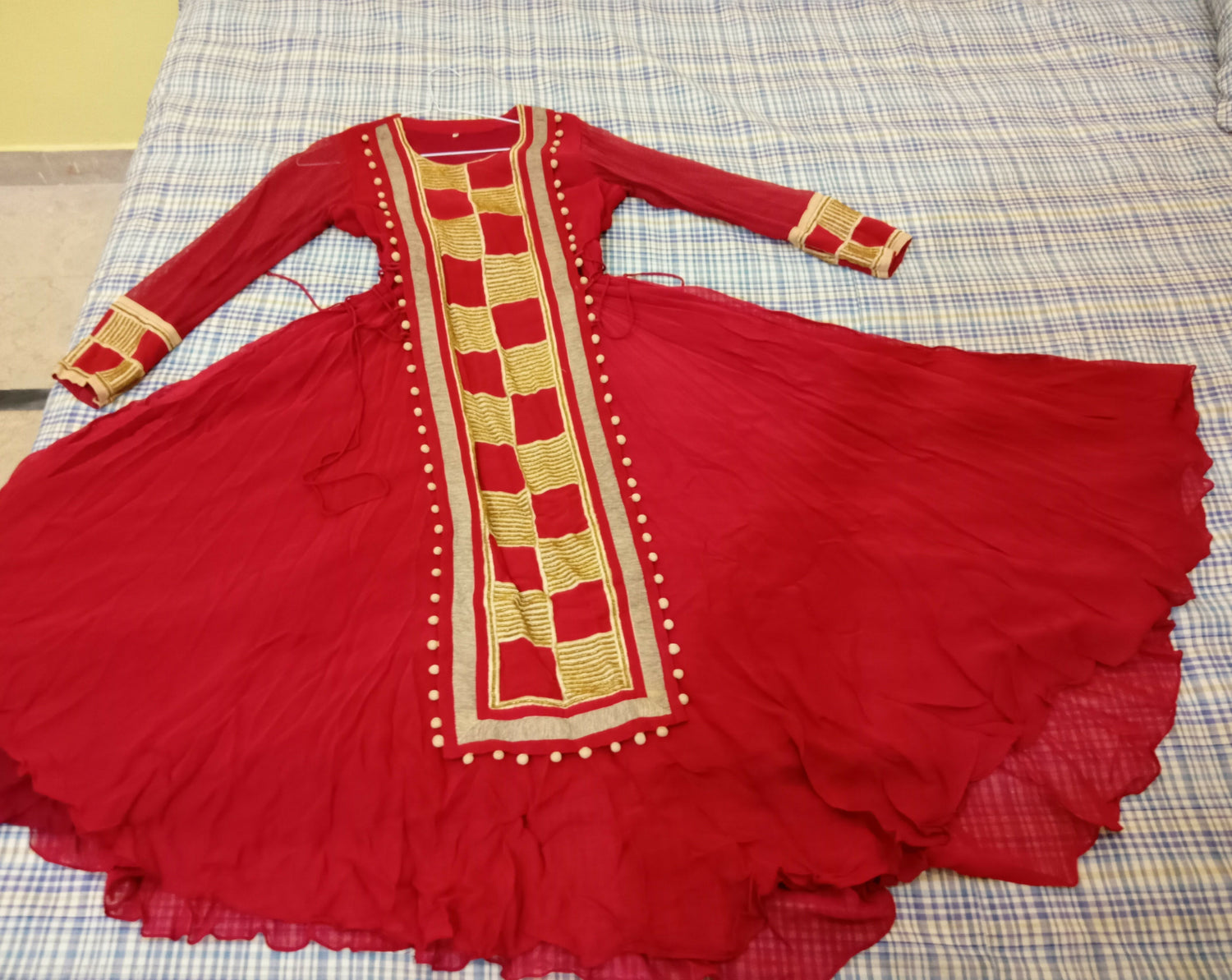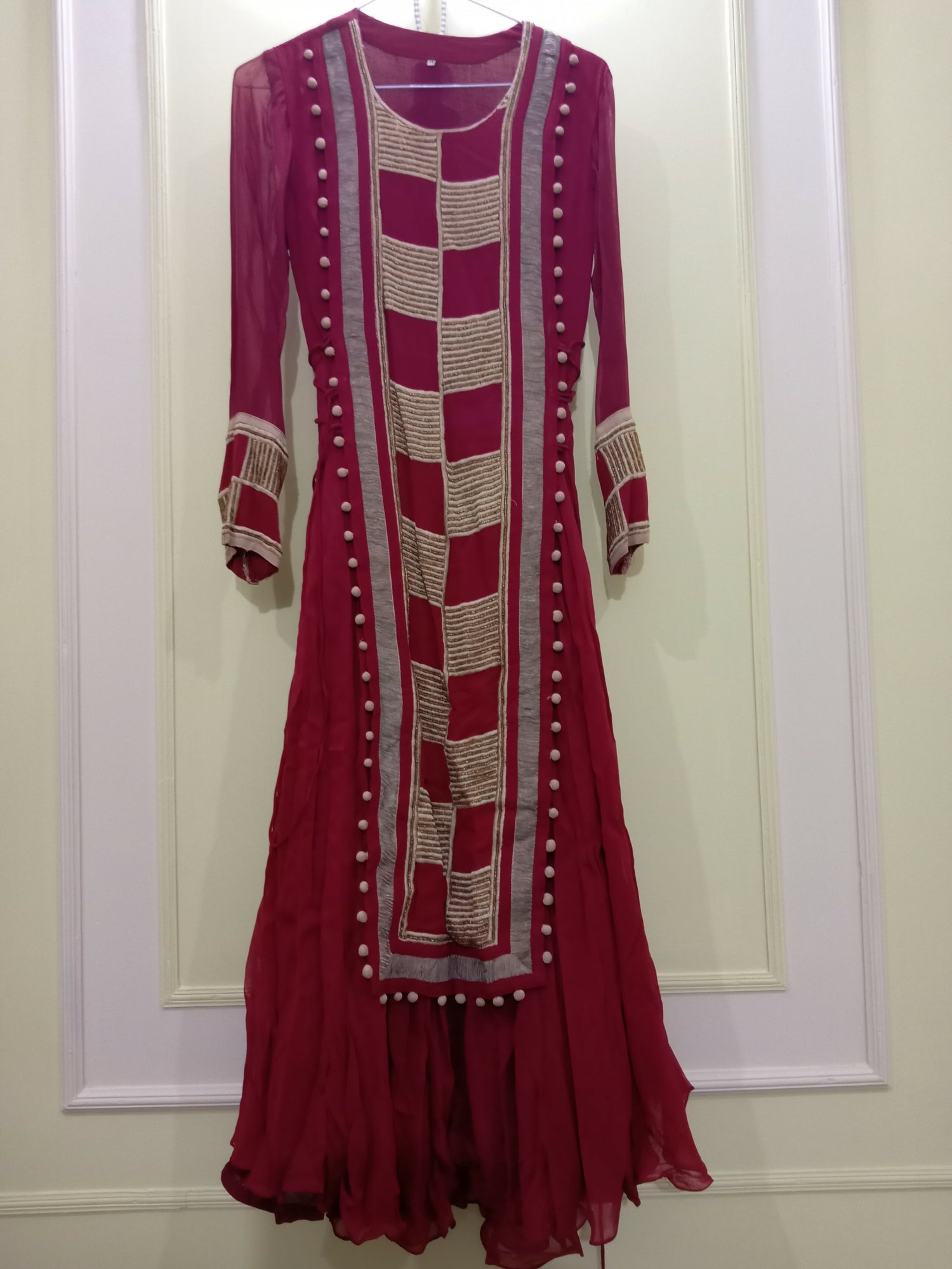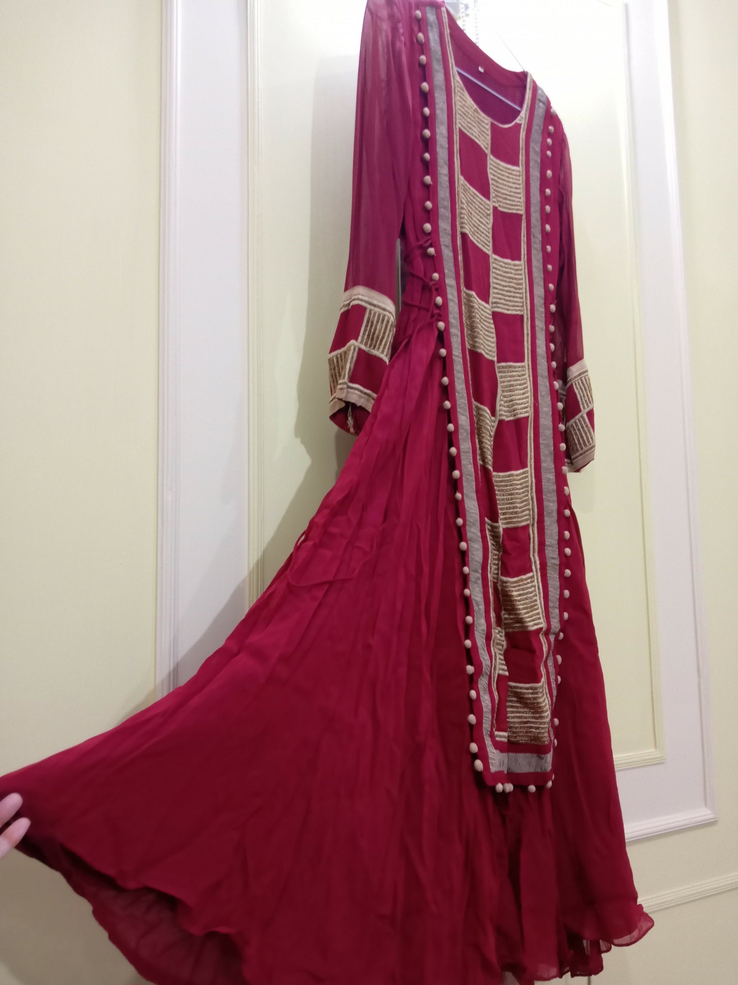 Maroon Chiffon Full Flair Maxi | Women Frocks & Maxis | Small | Preloved