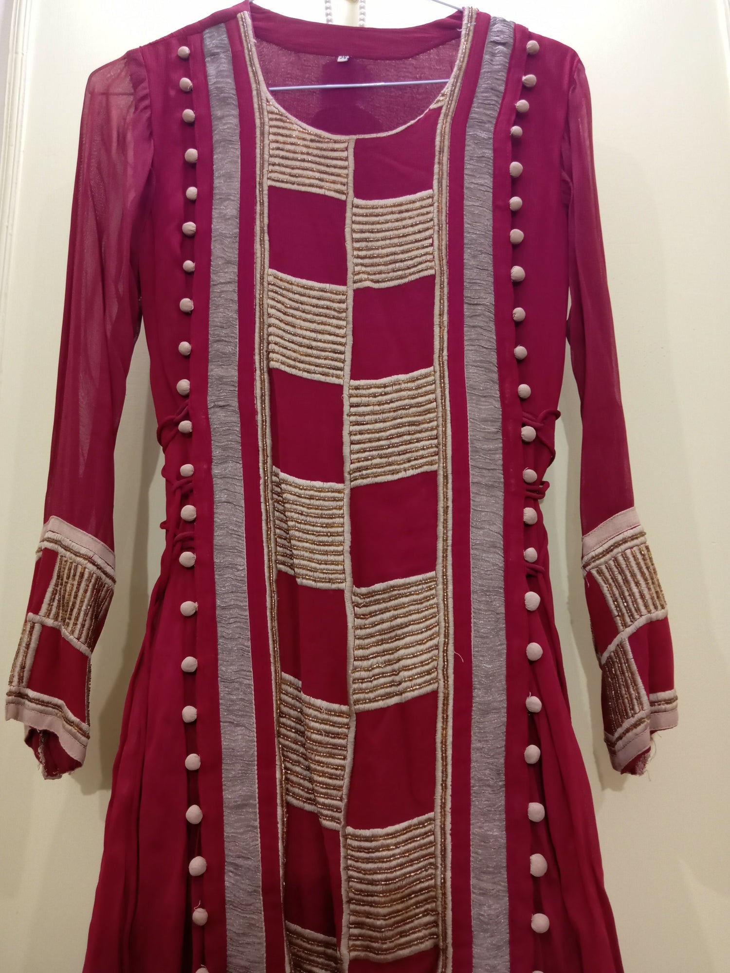 | MATERIAL & MEASUREMENT | Maroon shifon maxi. Size small Shoulder :14 Chest : 18-19 Waist: 16.5 Length: 47 |