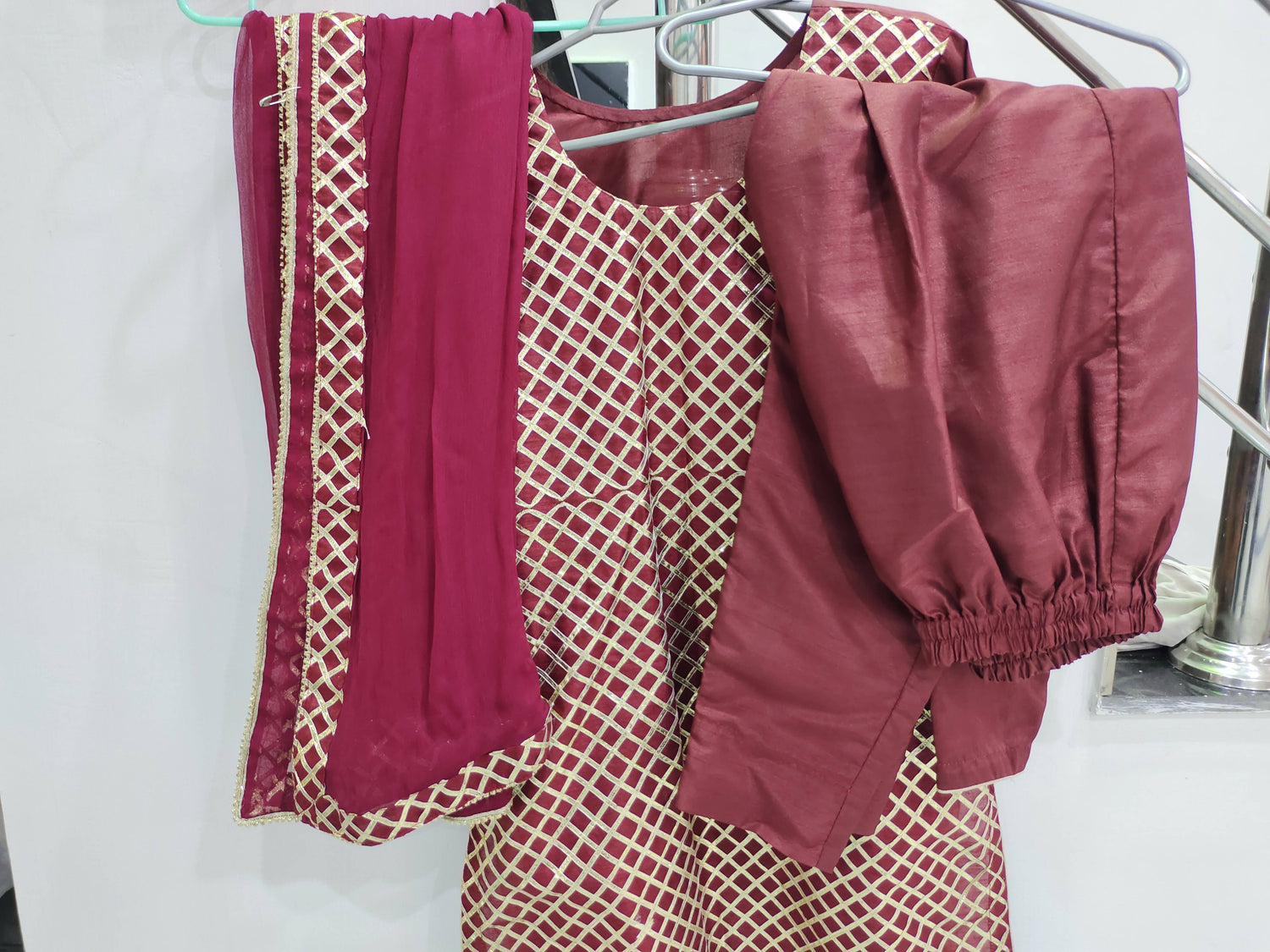 Maroon Color 3 Pc Suit | Women Locally Made Formals | Medium | Worn Once