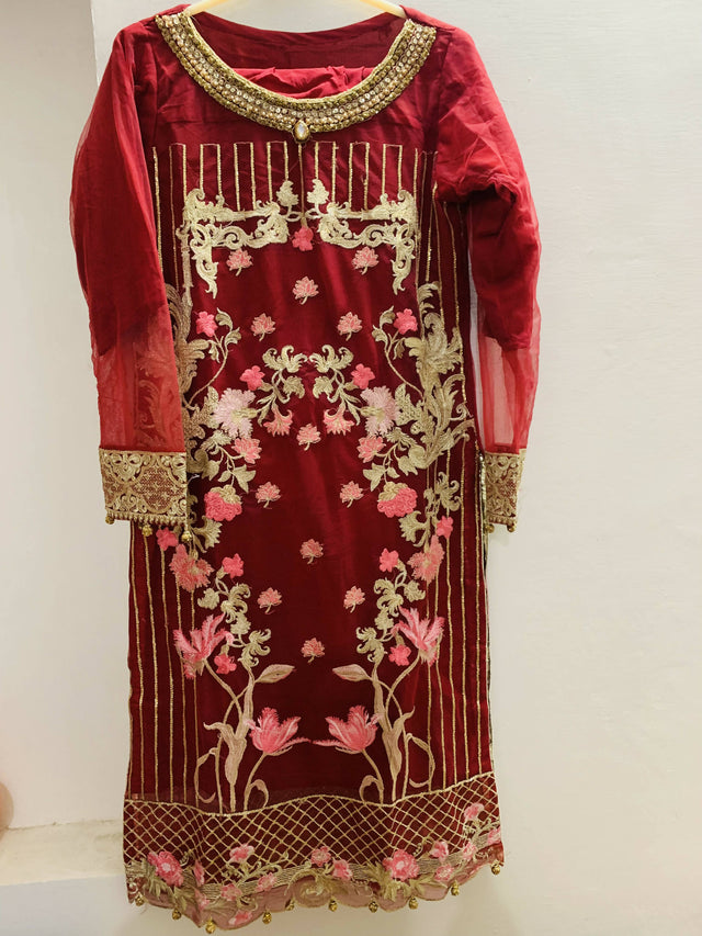 Maroon Fully Embroidered suit 3 PC | Women Locally Made Formals | Medium | Preloved is backordered and will ship as soon as it is back in stock.