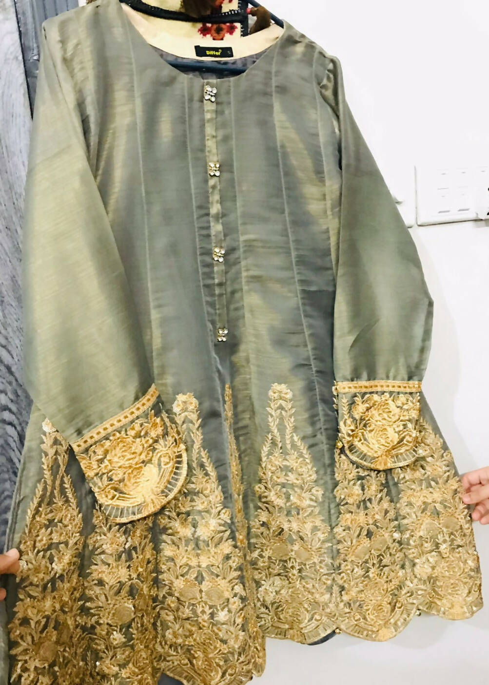 دامن اور آستین کے آخر اور پچھلے سرے پر کڑھائی