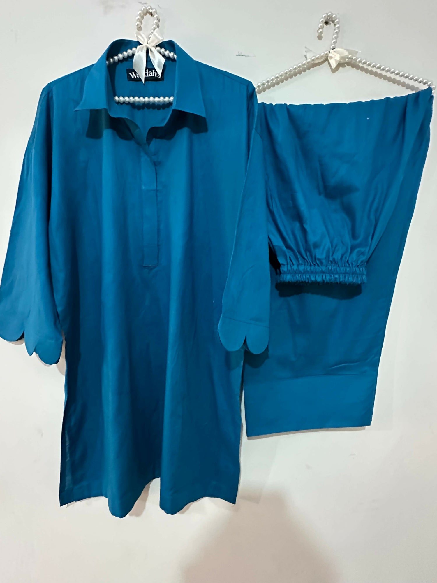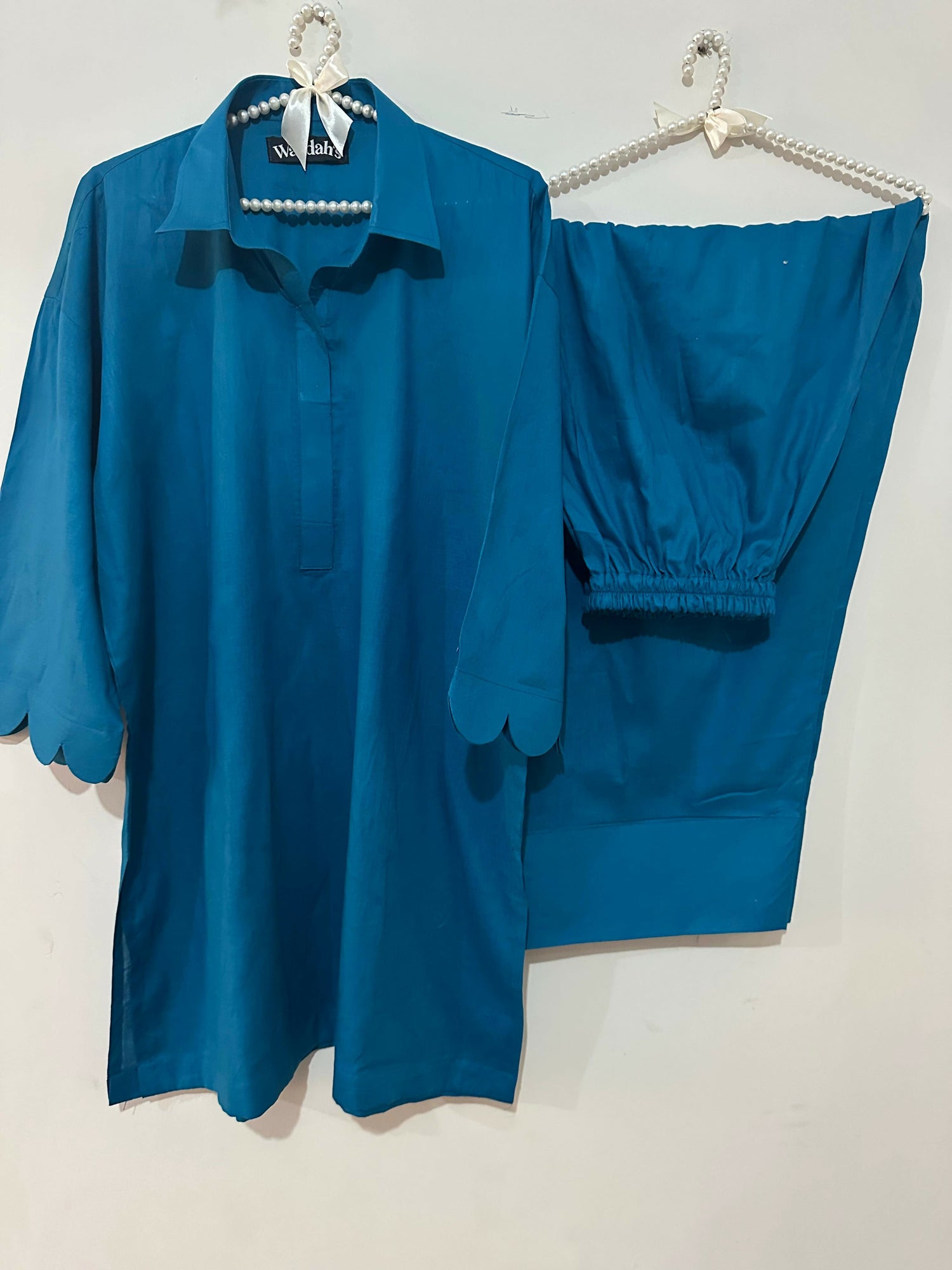| Step into effortless elegance with our beautifully crafted co-ord set, designed for the modern woman who values both comfort and style. This chic ensemble features a mid-length shirt paired with a versatile straight trouser as well as Farshi shalwar, perfect for casual wear or semi-formal gatherings. |
