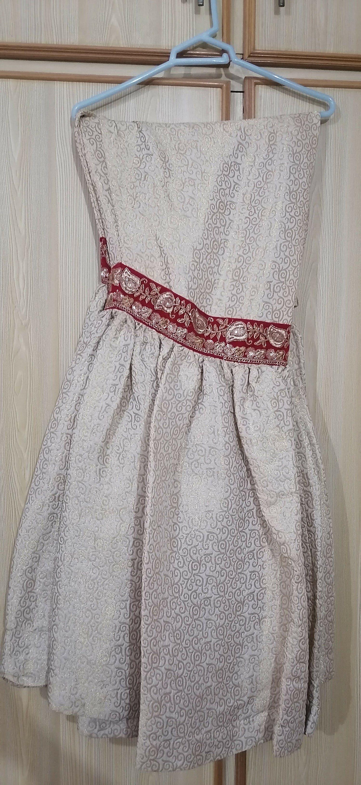 | MATERIAL & MEASUREMENT | Net shirt Jamawar gharara Gharara length: 44 Waist: 32 (elastic stretch 44) Shirt length: 38 Shoulder: 14.5 Sleeves length: 25 Fitting: 20 Chest: 20.5 |