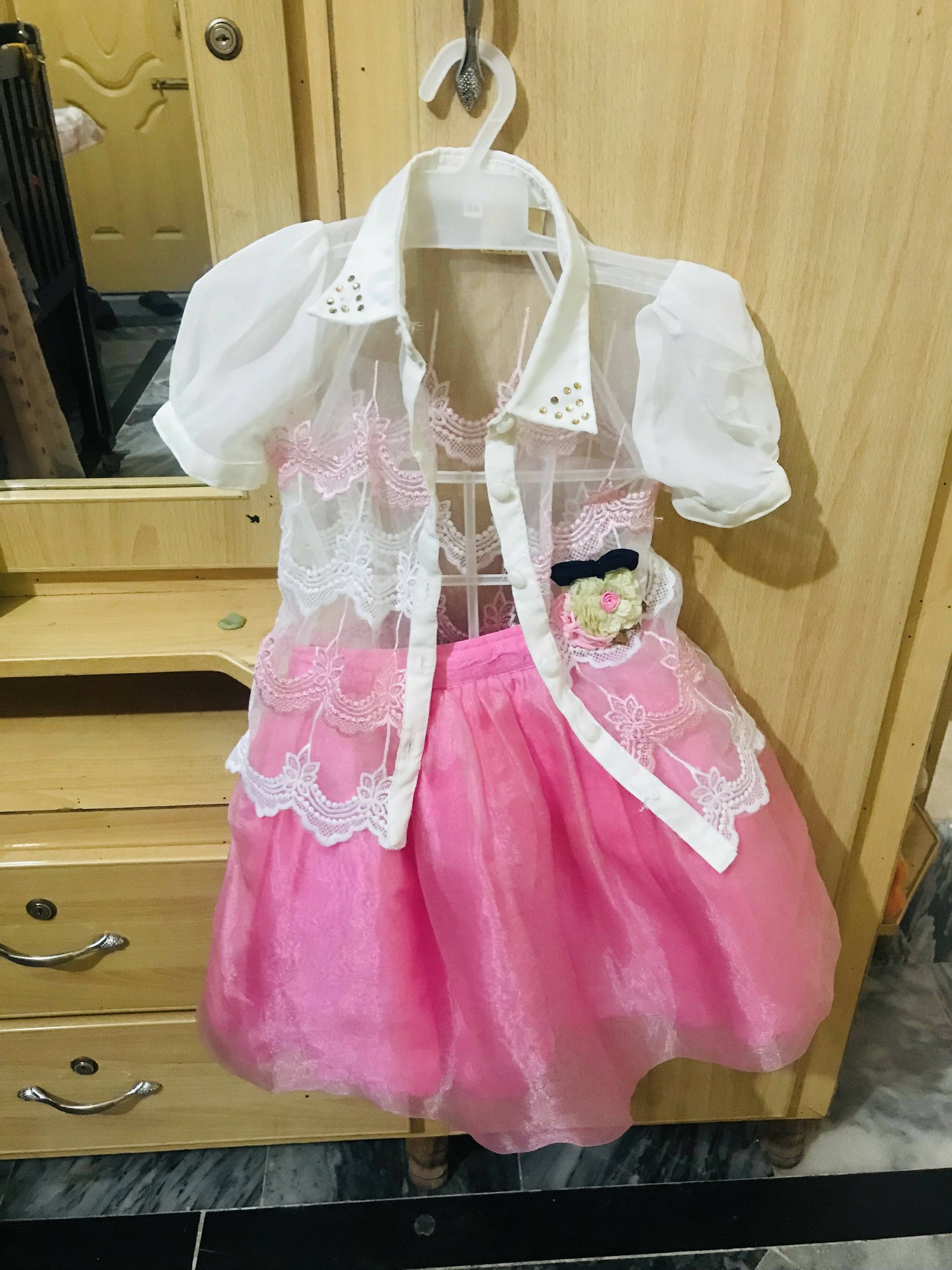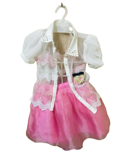 | MATERIAL & MEASUREMENT | 3 to 4 year kid’s dress Measurements: Chest 11 Shoulder 9 Shirt length 17 Skirt length 16 Fabric / Material: Organza |