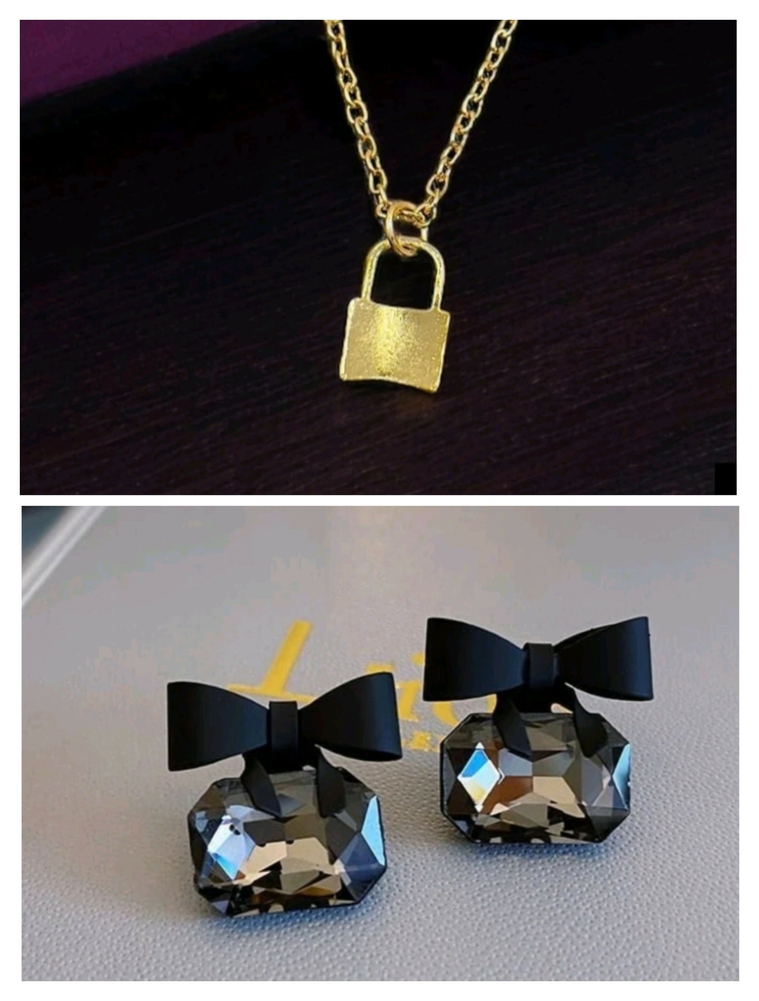 Pack of 1 Pair of Bow Earring with a Lock Pendant | Women Jewelry | Size: 2×2 cm | New