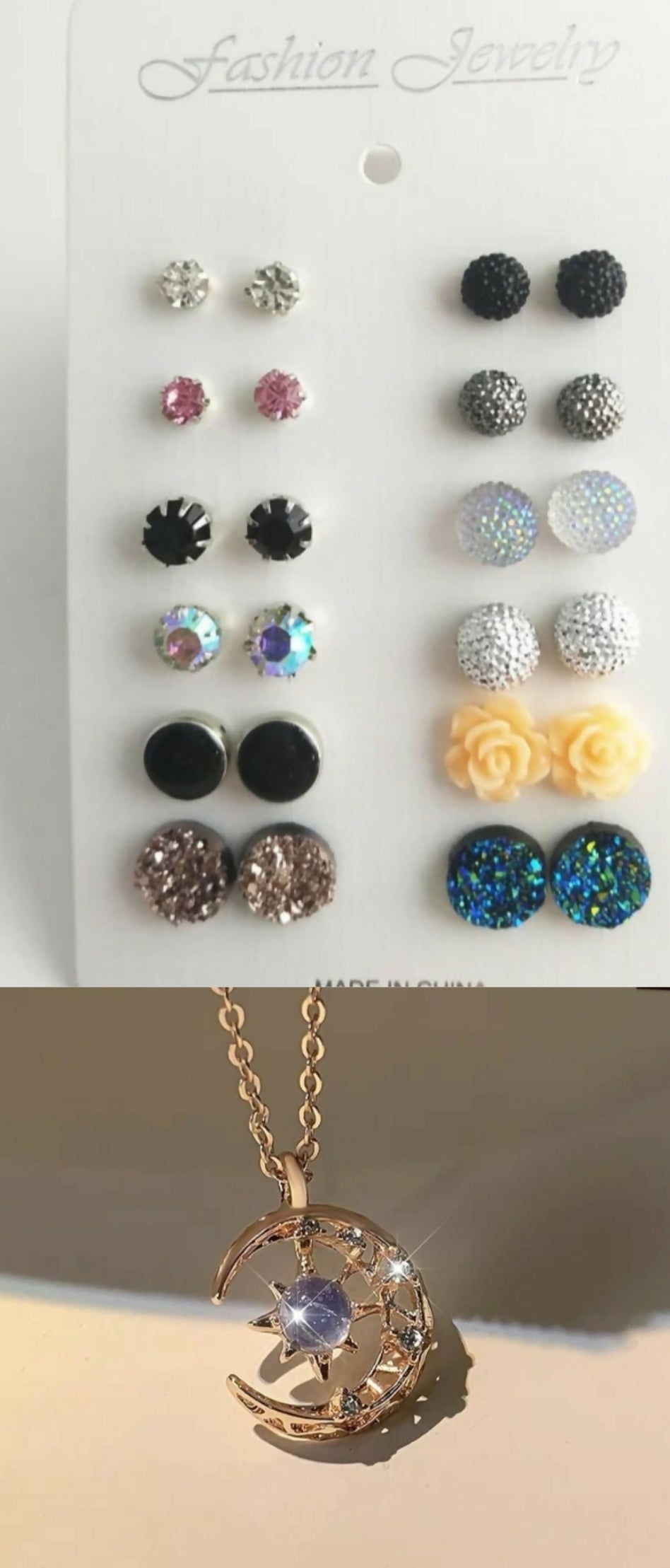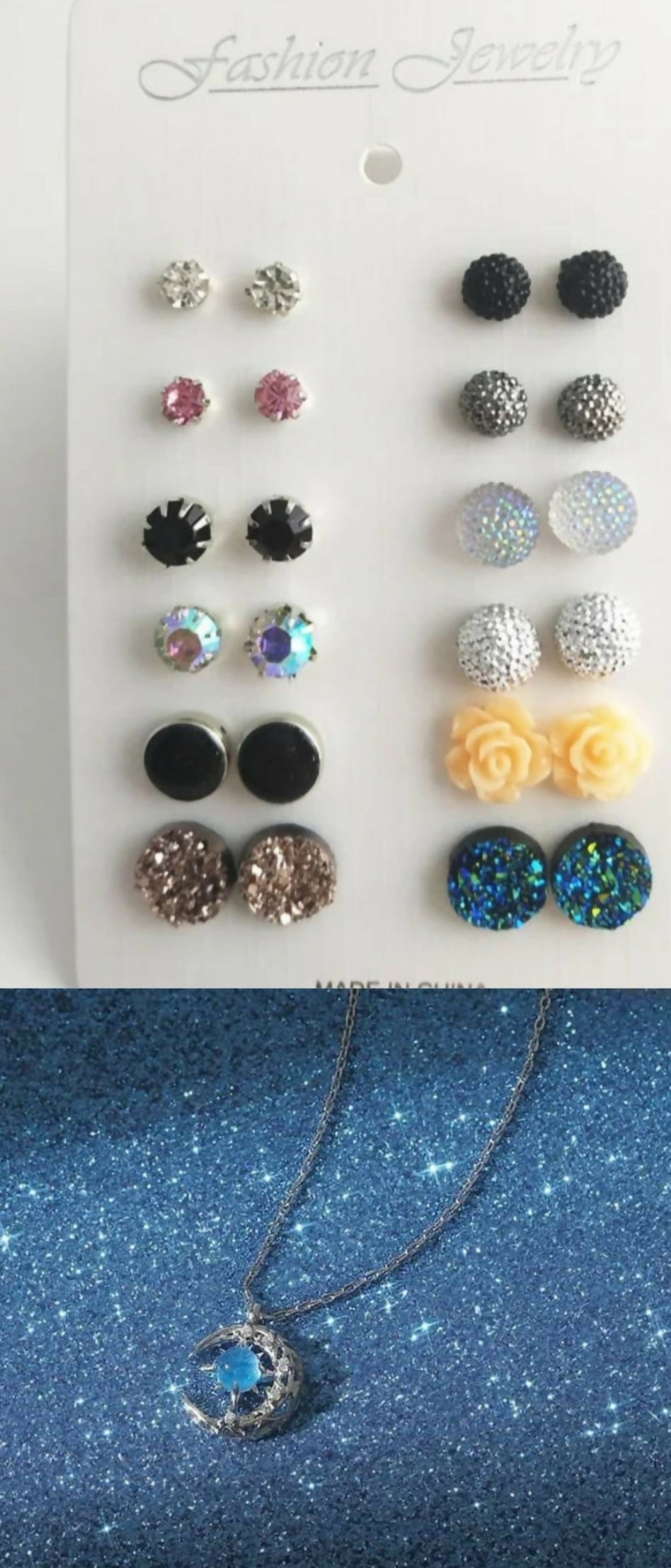 Number of pieces: 12 pairs of tops & a pendant