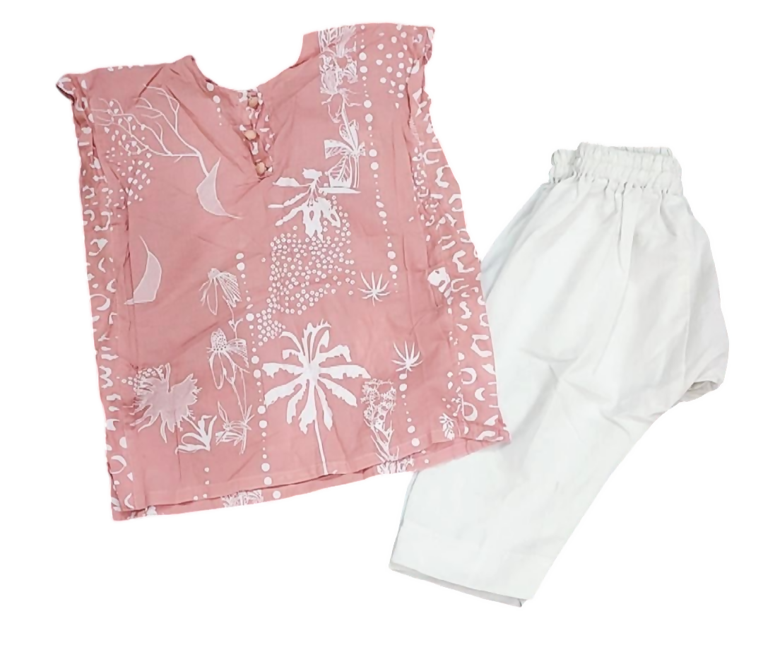 | MATERIAL & MEASUREMENT | Size: Small (3-4 years) Multi orange color Trouser size: Length 19" Waist 9" Shirt size: Length 20" Chest 11" Sleeves 4.5" Peach Shirt size: Length 16.5" Chest 11" Trouser size: Length 17" Material: Lawn |