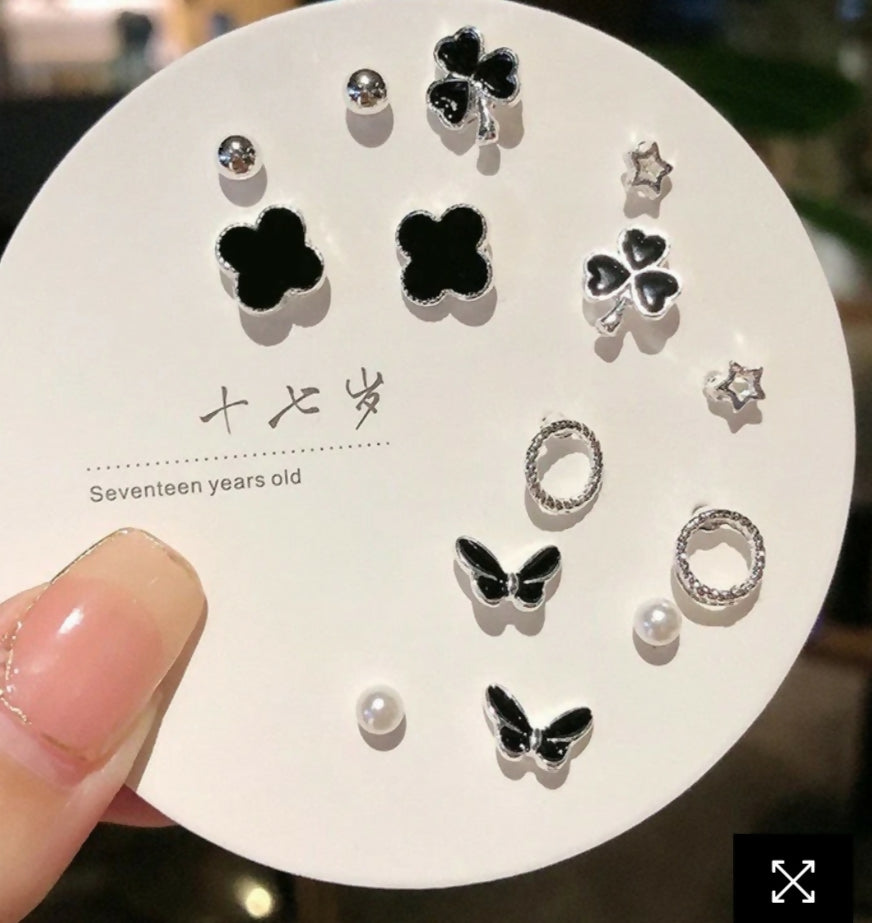 Pack of 7 pairs of tops and a pendant for Women - 1 is backordered and will ship as soon as it is back in stock.