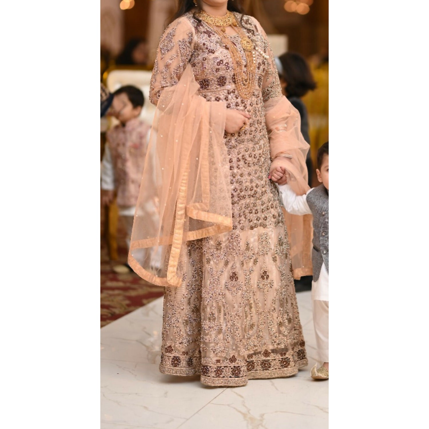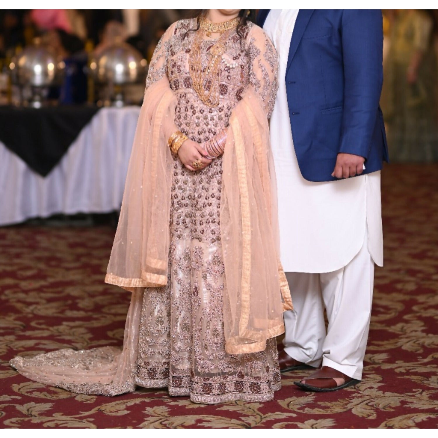 Alluring Peach Bridal Maxi with Tail | Women Bridals | Medium | Worn Once