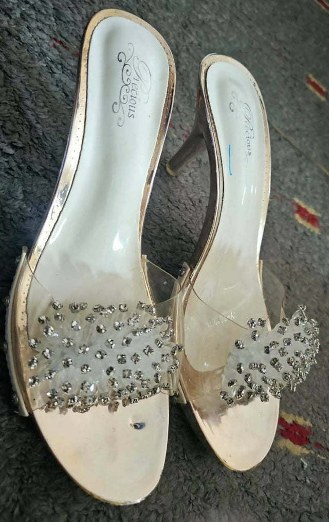 | MATERIAL & MEASUREMENT | Peech glass fancy heels Size 37 |