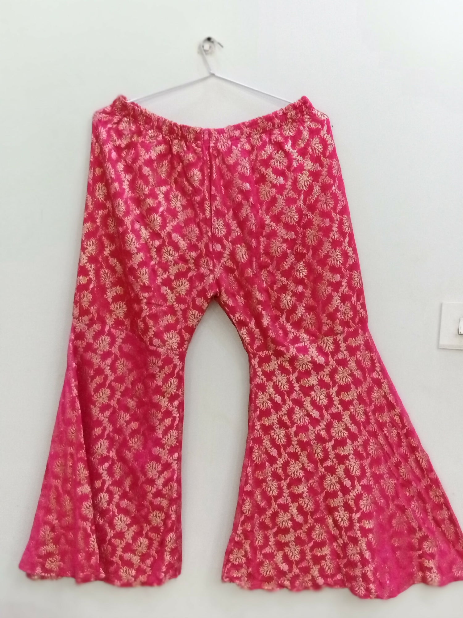 | MATERIAL & MEASUREMENT | Material:crinkle chiffon Measurement:Shirt size:- Chest:18 inches Length:37 inch Shoulder: 8.3 inch Flare:33inch Sharara size:- Length:39 inch |