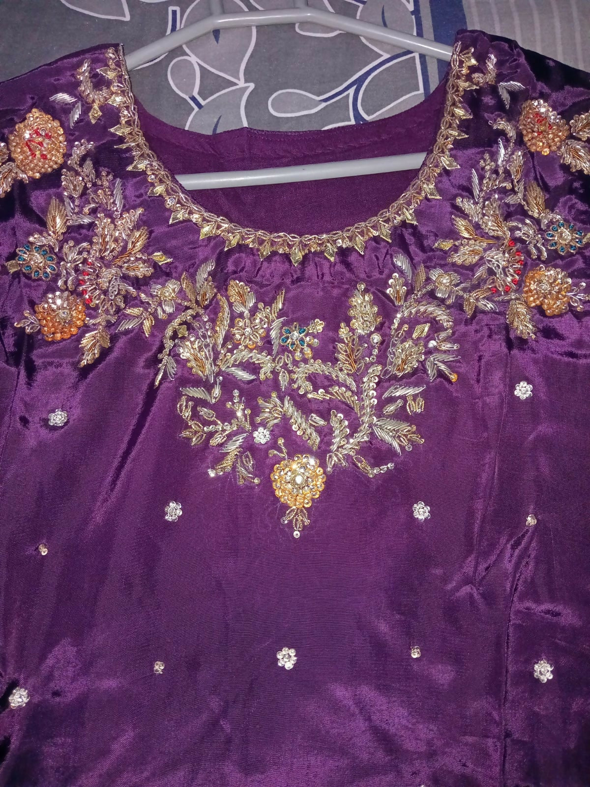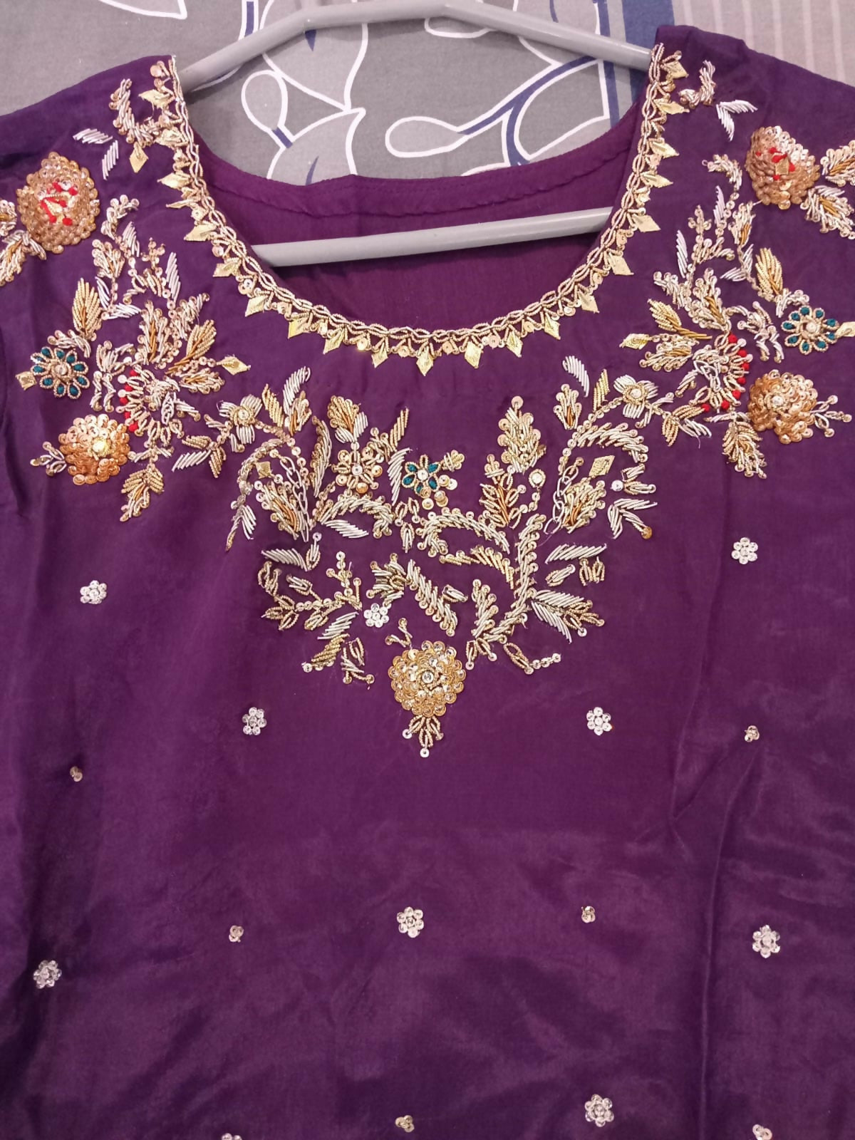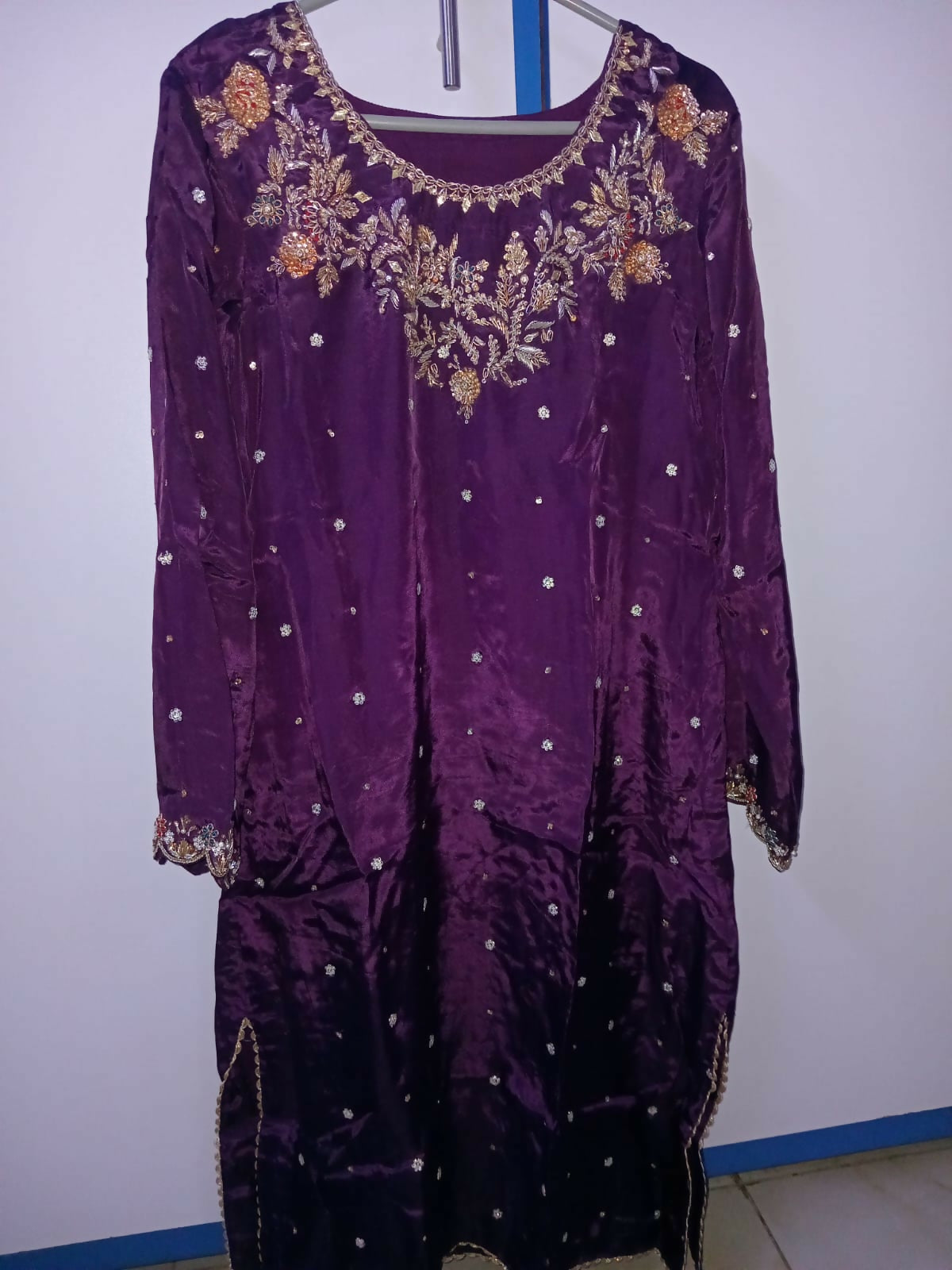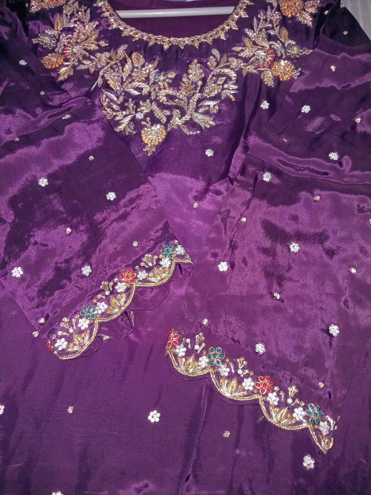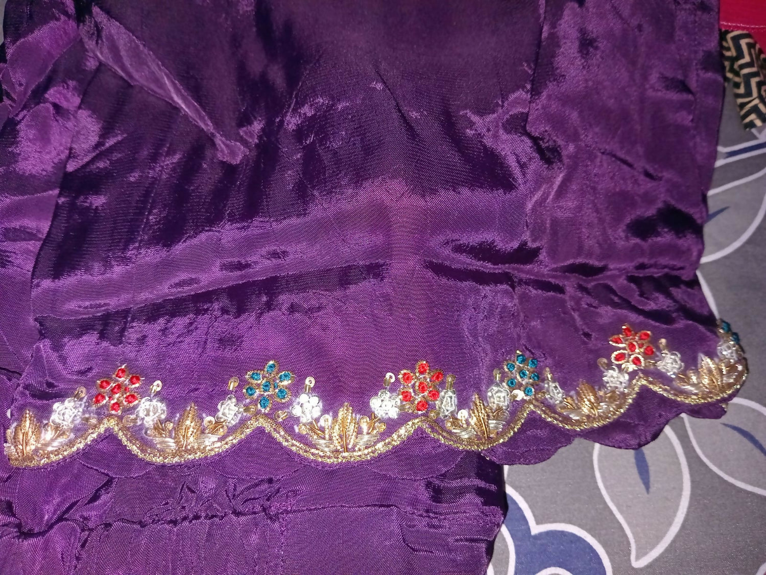 Pants : Purple wide bottom with hand embroidery