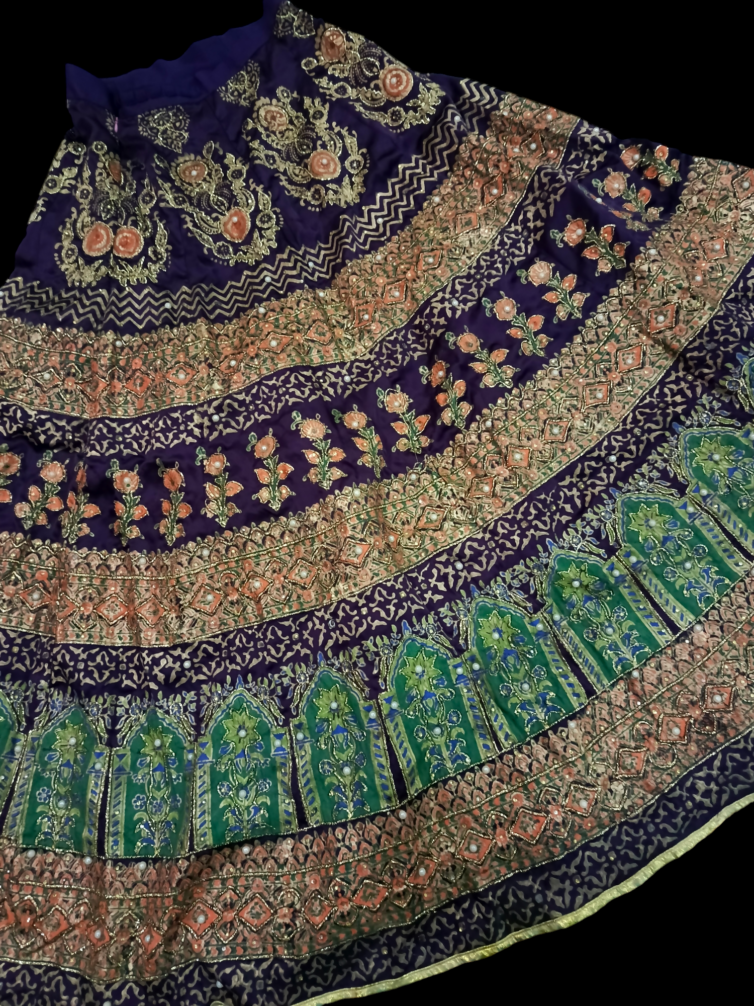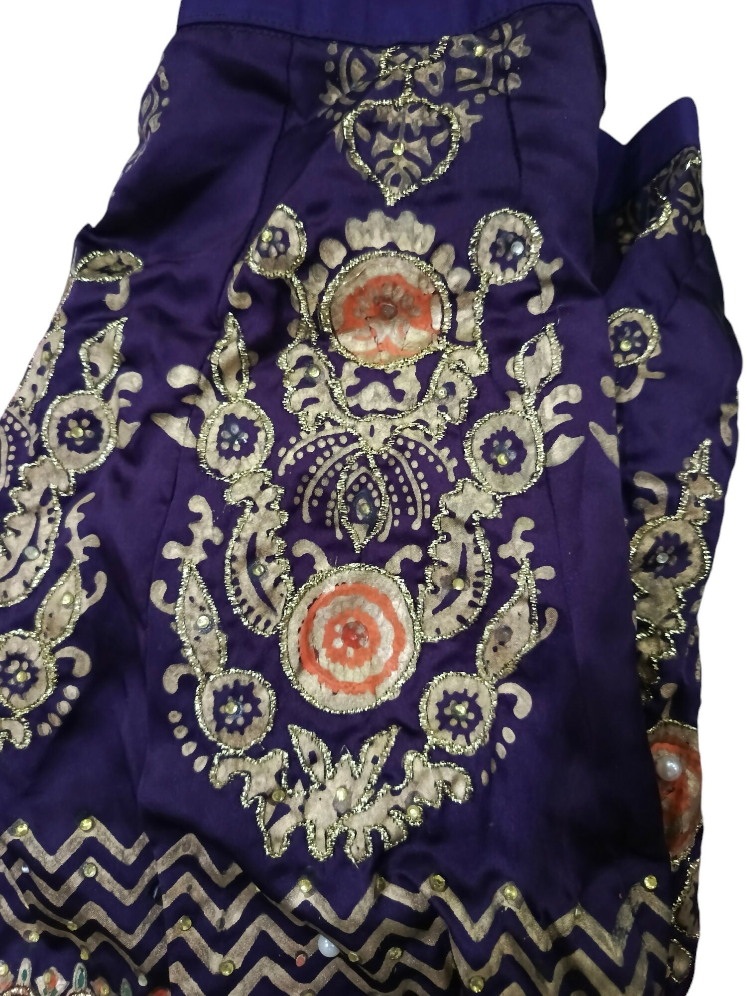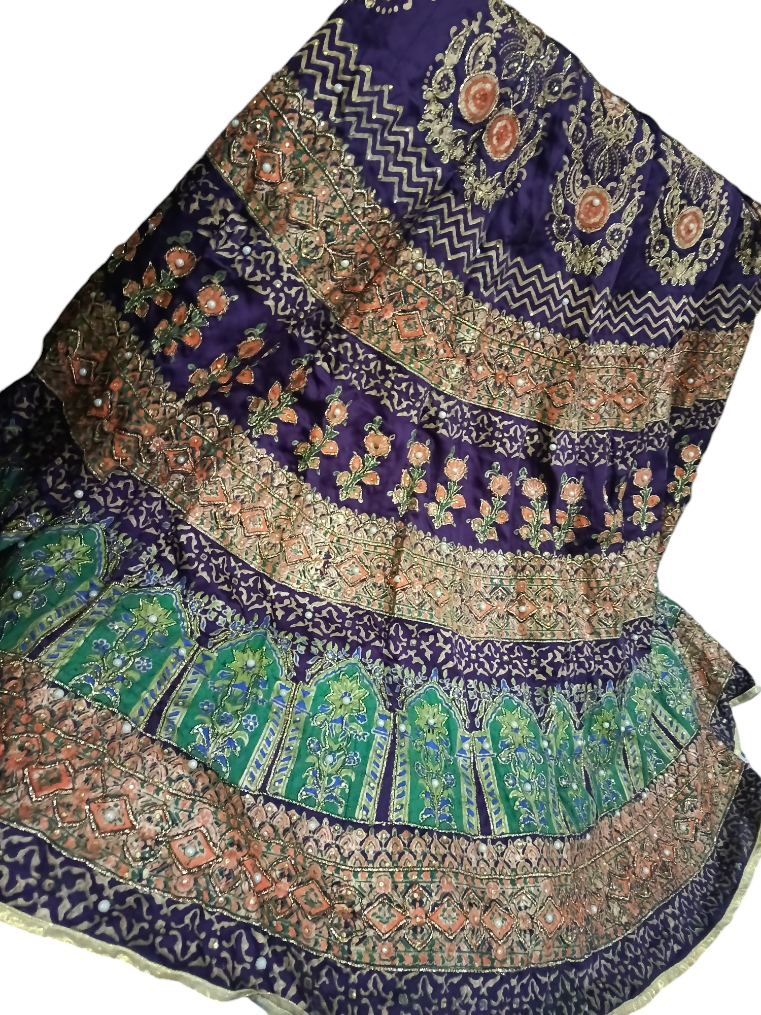 Purple Green Golden Embellished Lehnga | Women Locally Made Formals| Medium | Worn Once