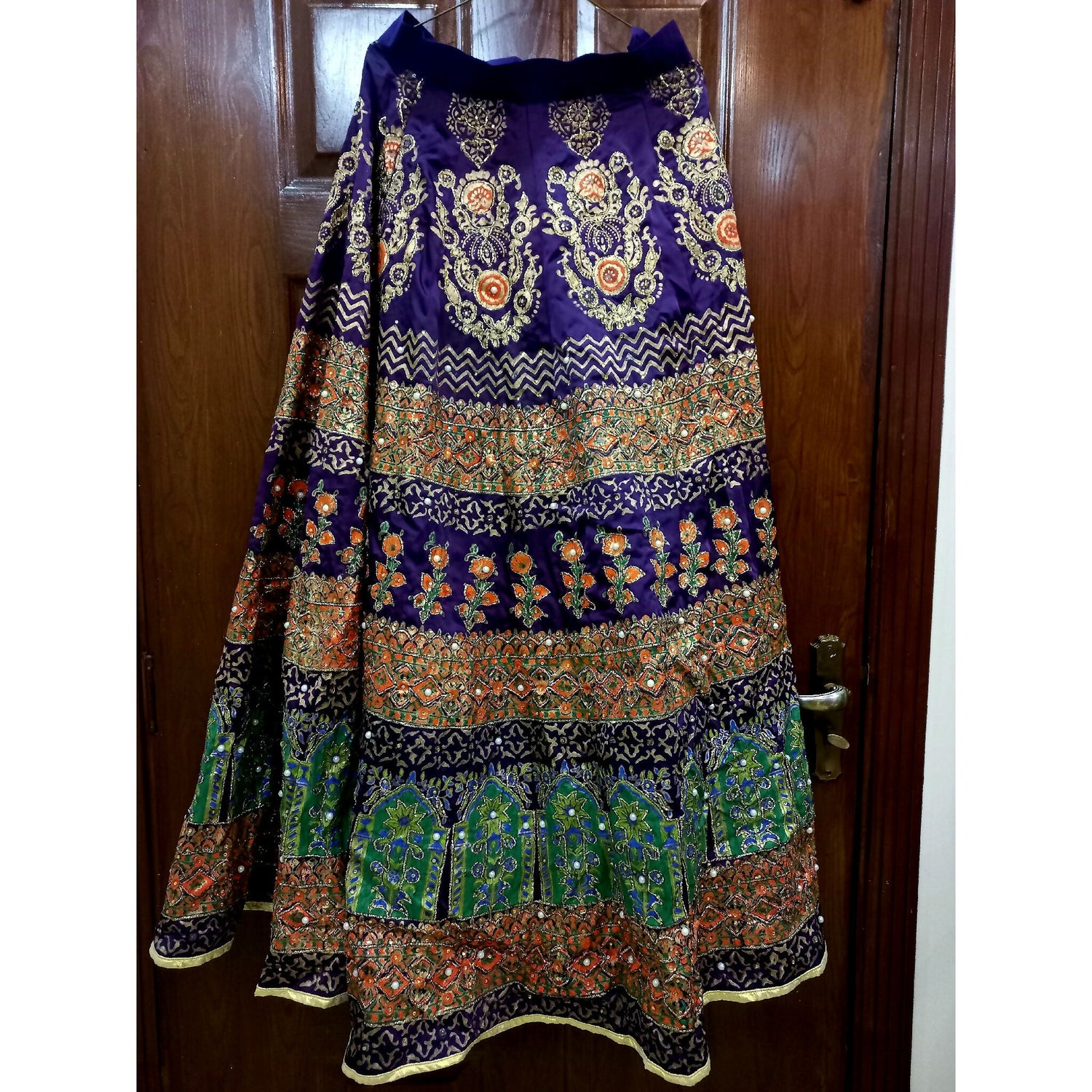 Purple Green Golden Embellished Lehnga | Women Locally Made Formals| Medium | Worn Once is backordered and will ship as soon as it is back in stock.