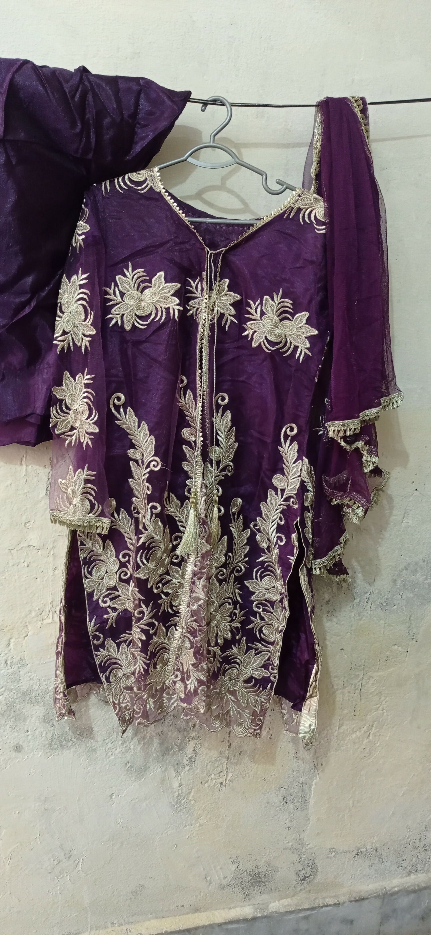 Purple Net Embroidery Kurta | Women Locally Made Kurta | Medium | Worn Once