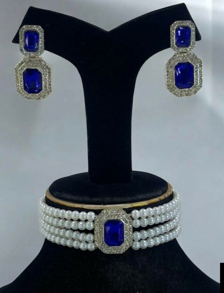 Rectangle Choker Set-00230 | Women Jewelry | Wedding Jewelry & Sets | Brand New - Blue is backordered and will ship as soon as it is back in stock.