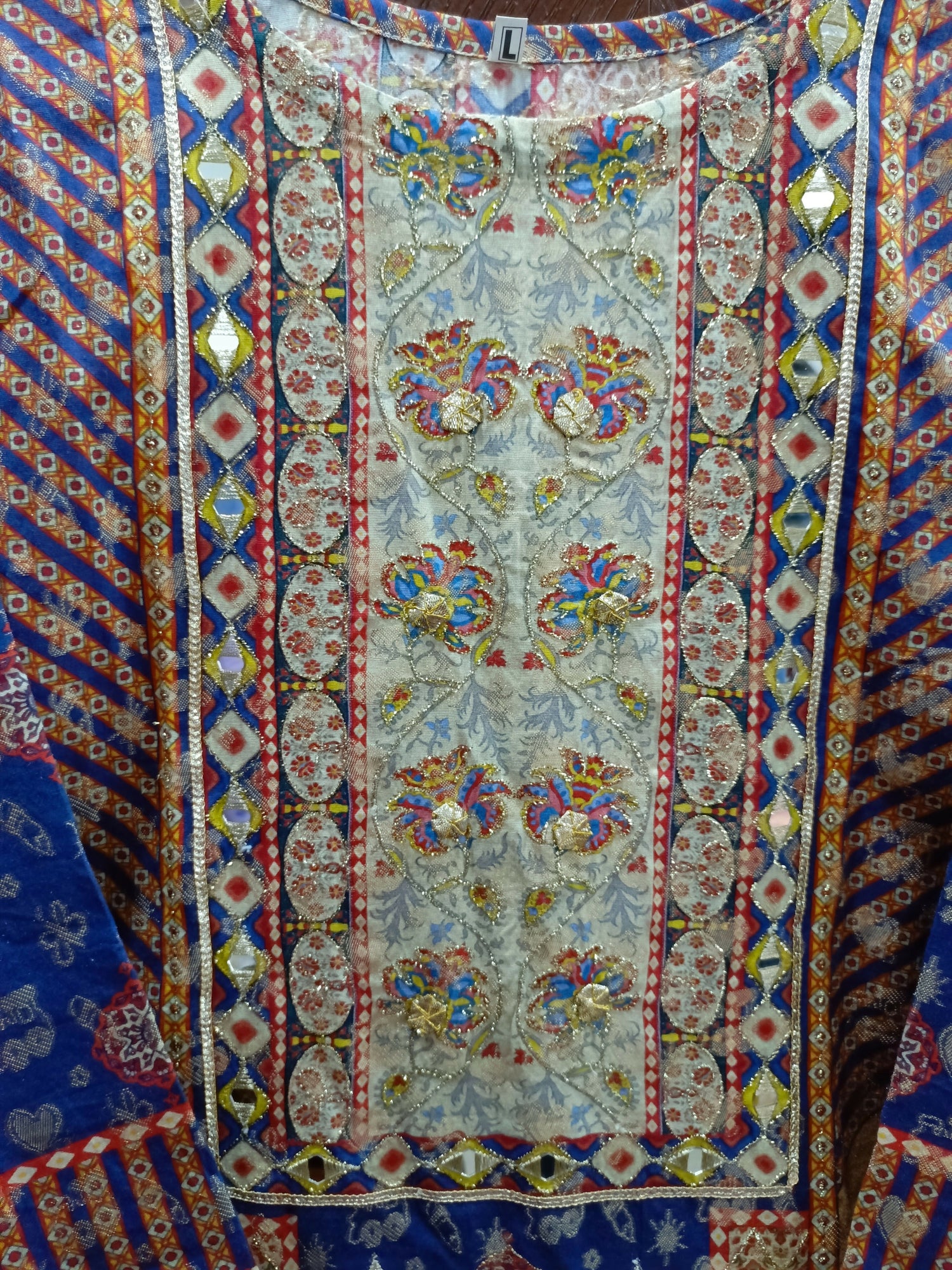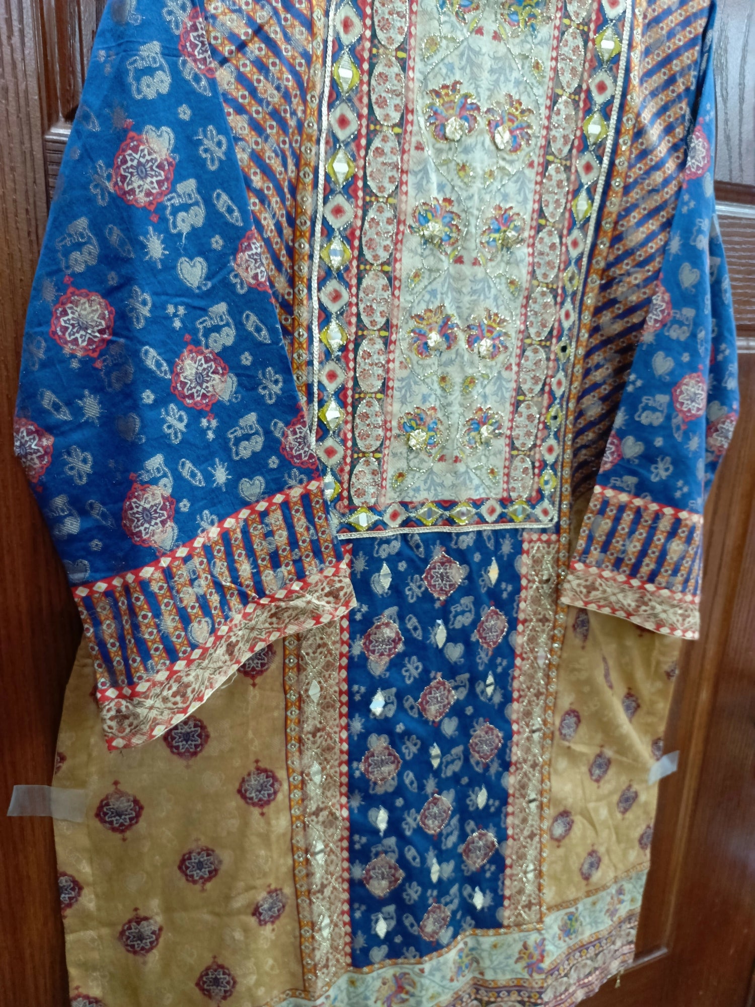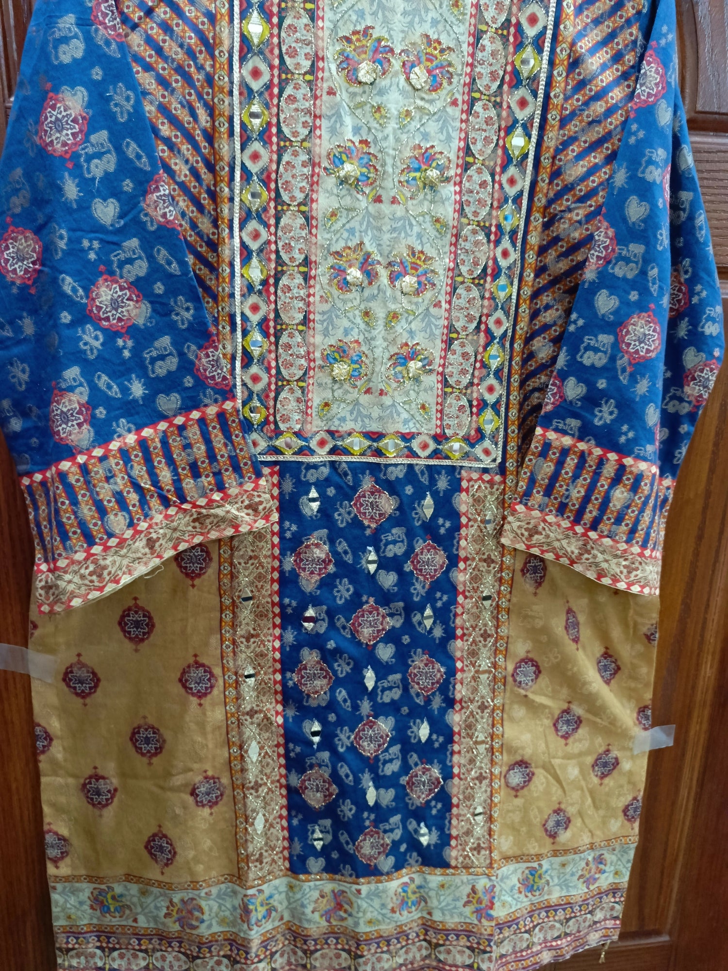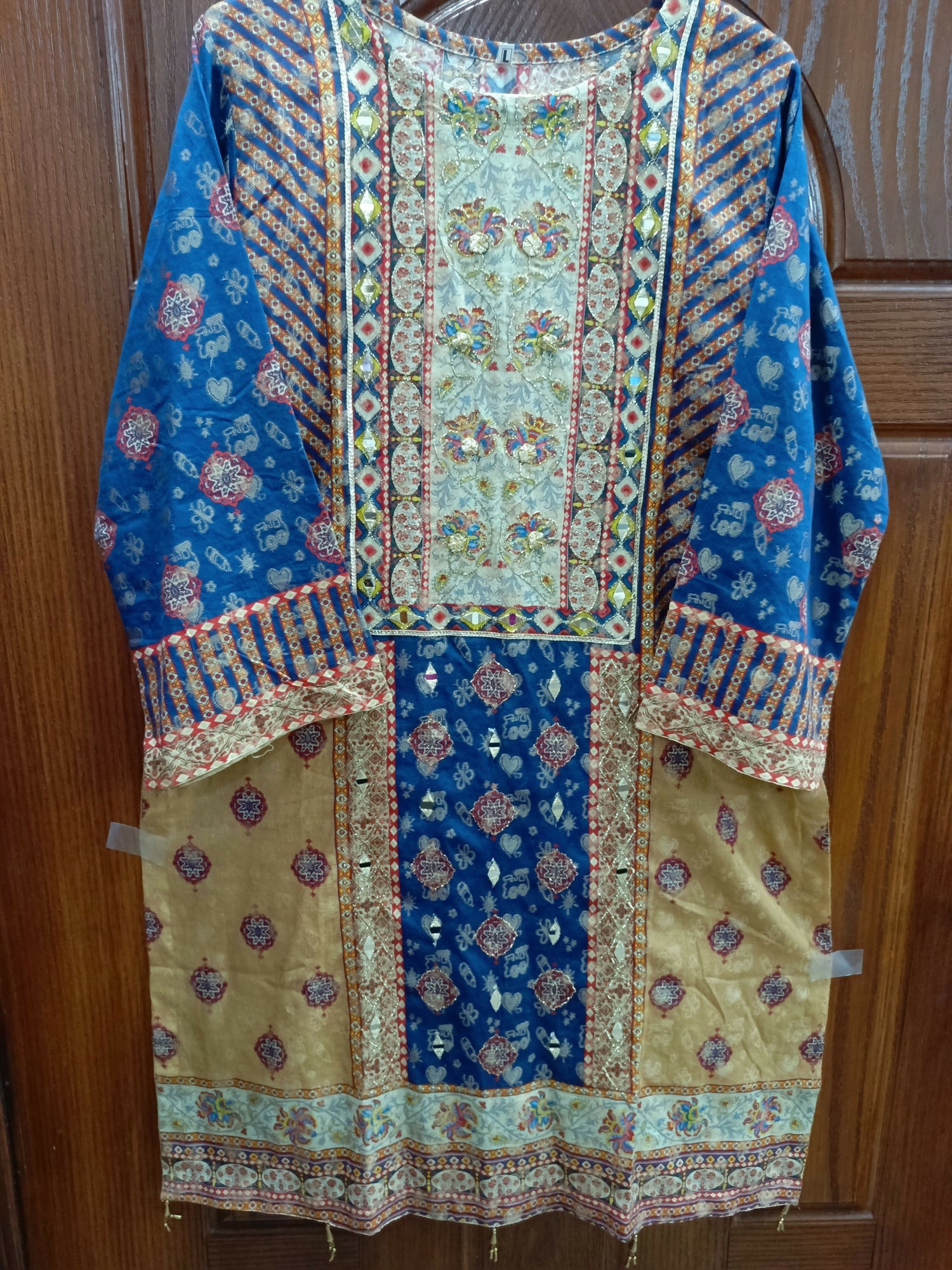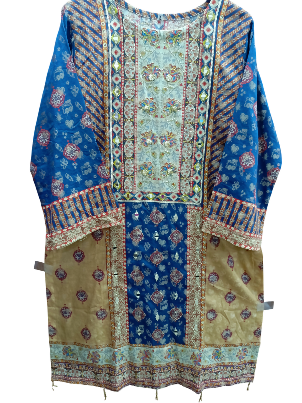 New & tagged refuge Eastern fancy shirt having gotta and mirror work on front and golden tussels at daman.