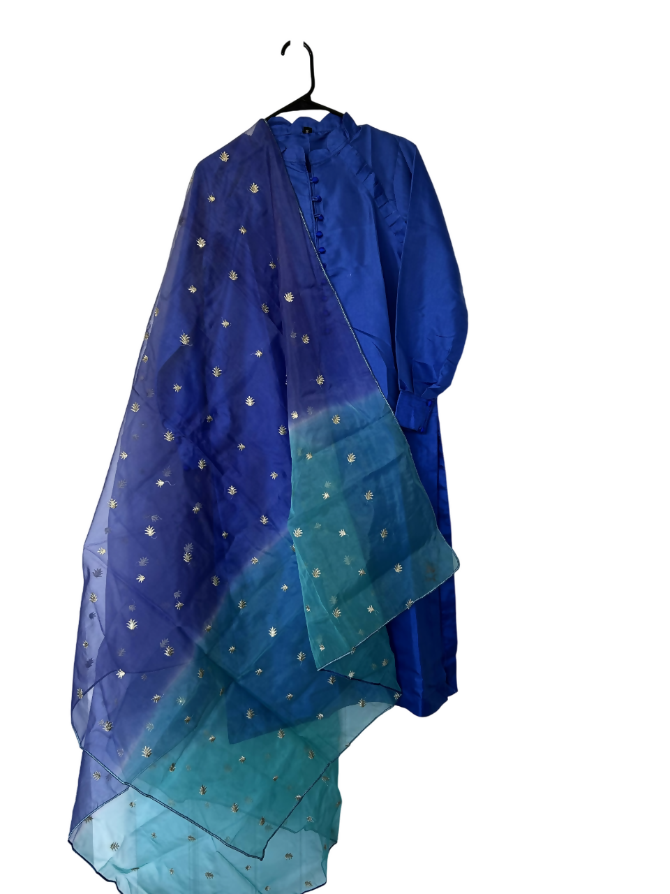 MATERIAL & MEASUREMENT Fabric: Jamawar Shirt and Trouser Dupata Tissue with Embroidery Measurements: Shirt: Length: 43 inches Chest: 18 inches Sleeves: 22 (Cuff Sleeves ) Trouser: Length: 35 inches