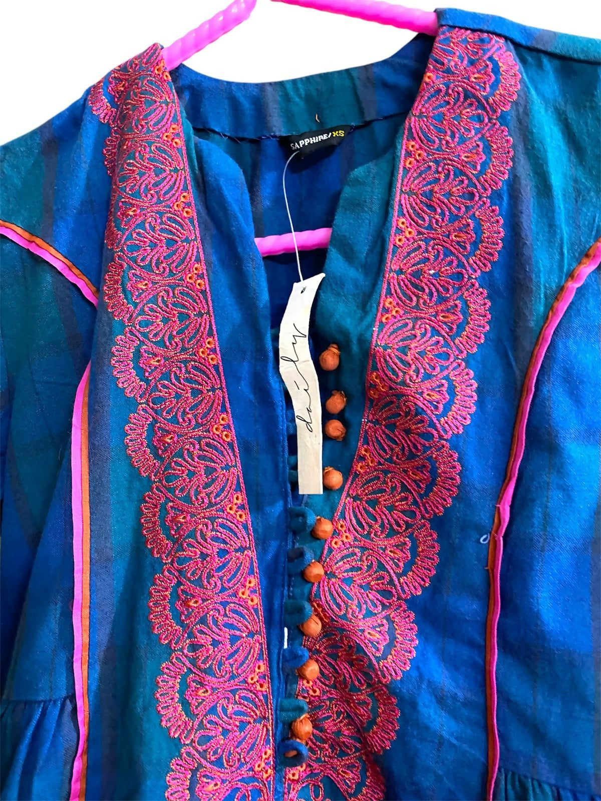 Sapphire | Blue Embroidered Frock | Women Frocks & Maxis | XSmall | Worn Once