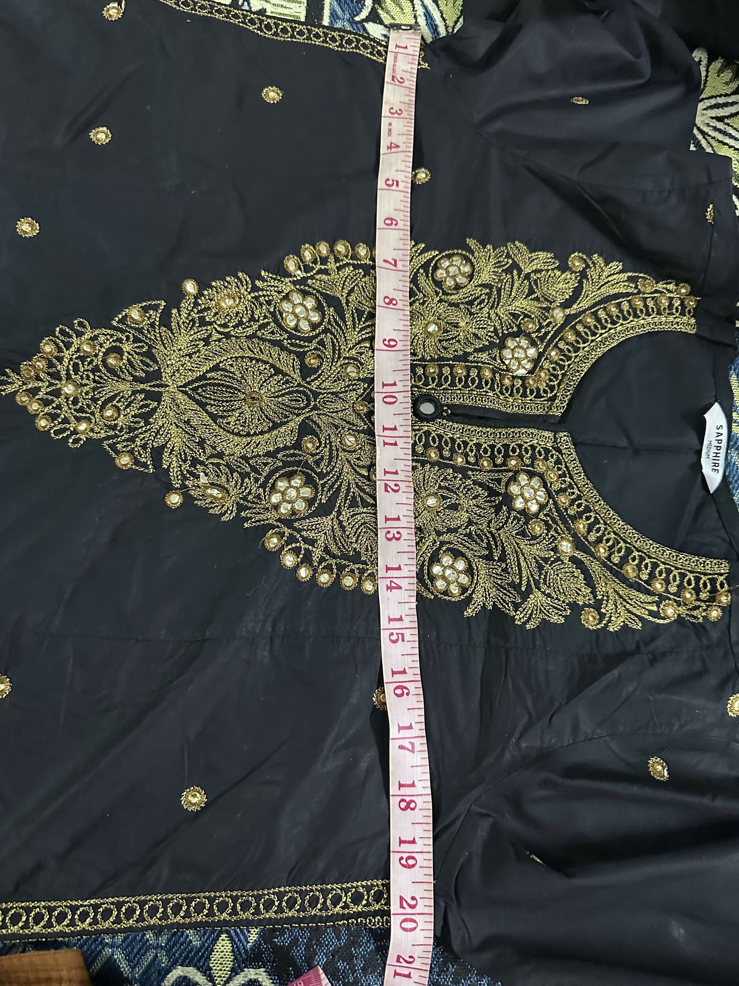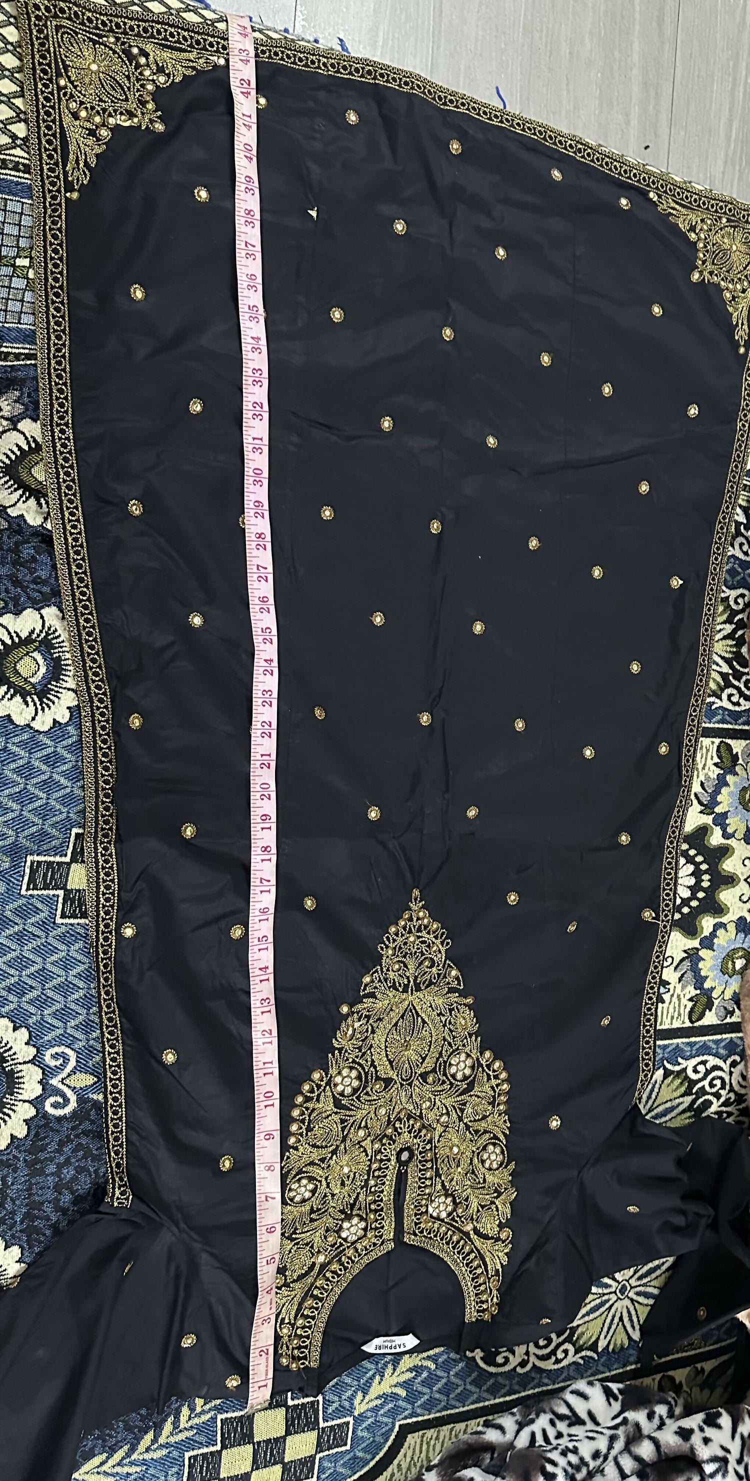 Heavily embroidered black shirt with golden detailing perfect for festive season