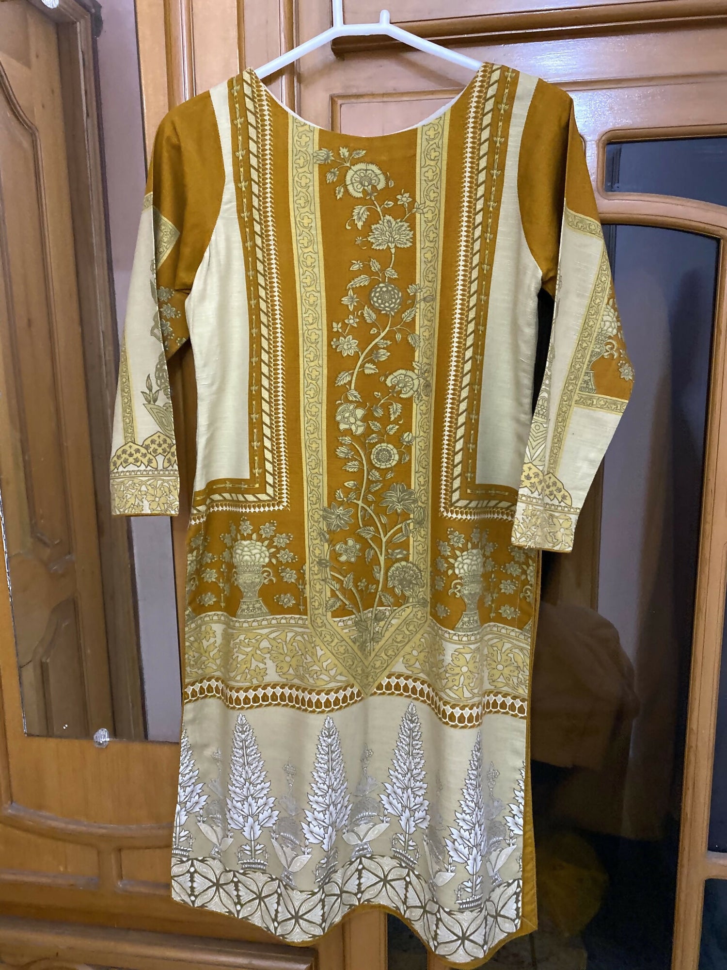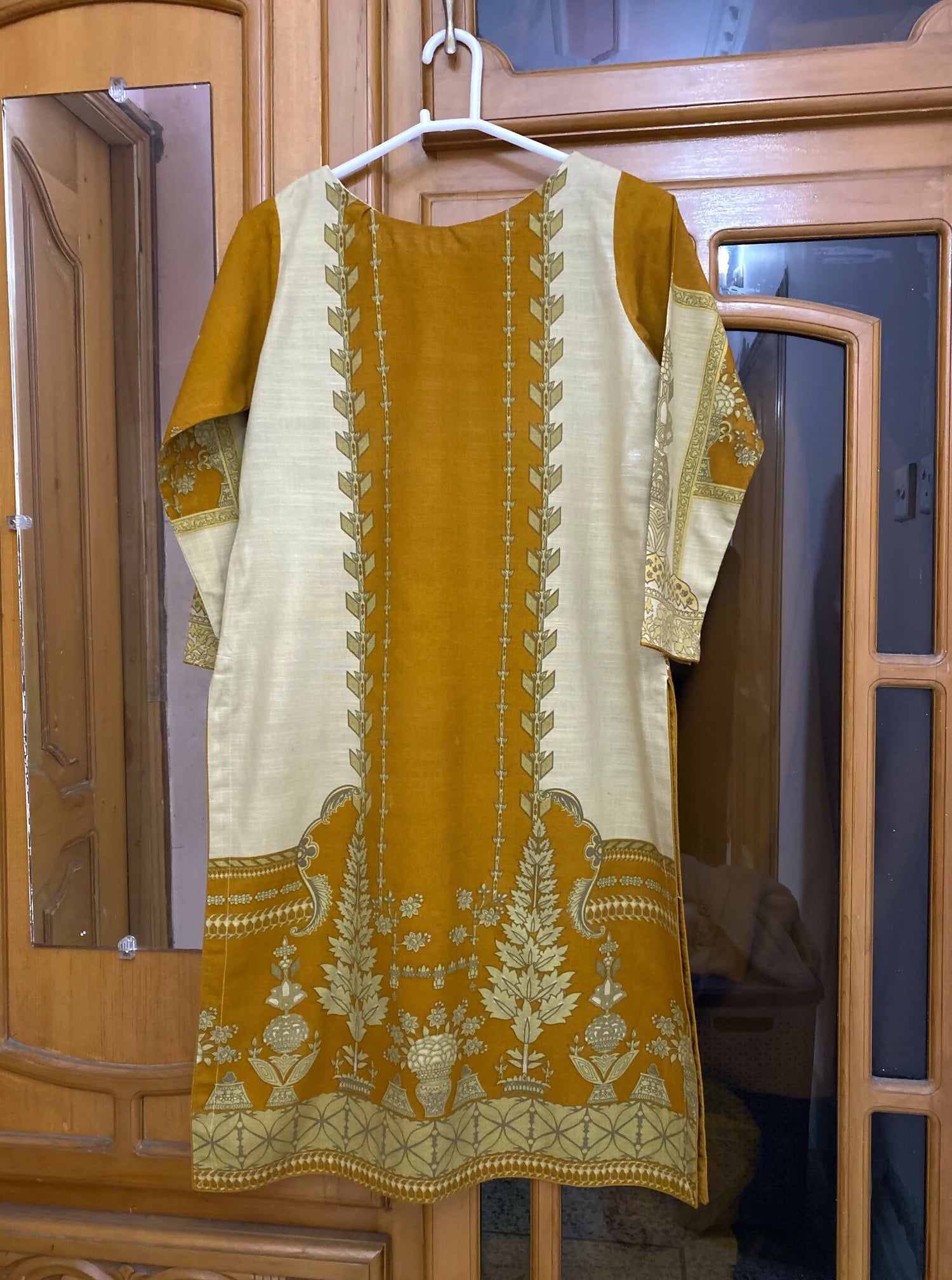 Color: Mustard and beige