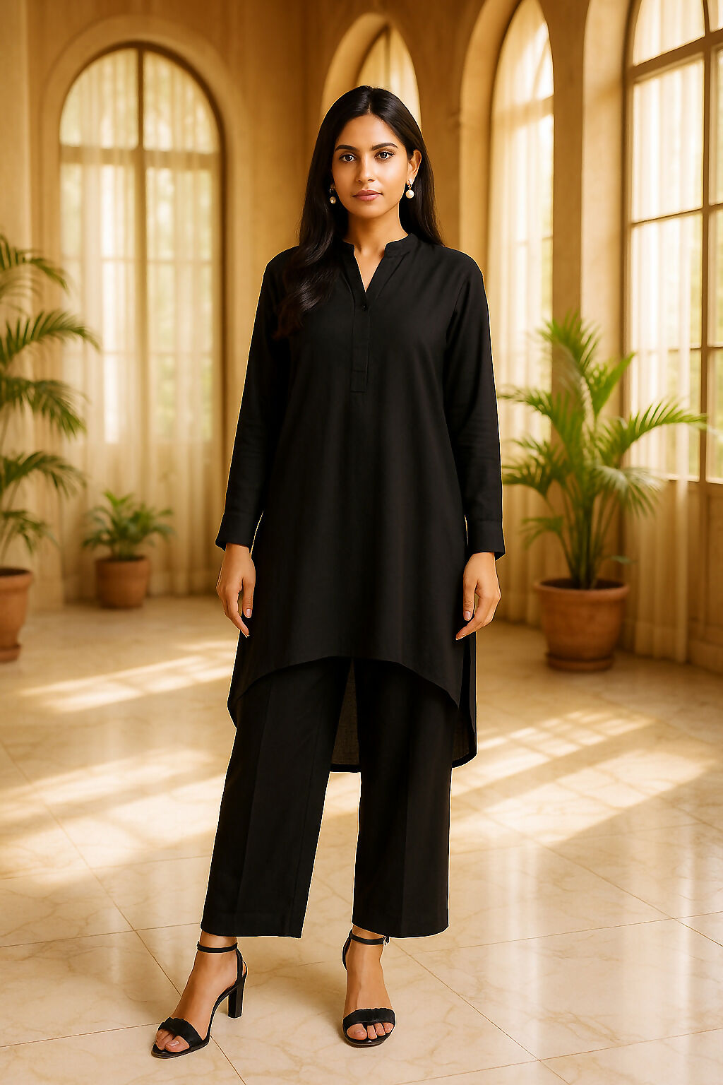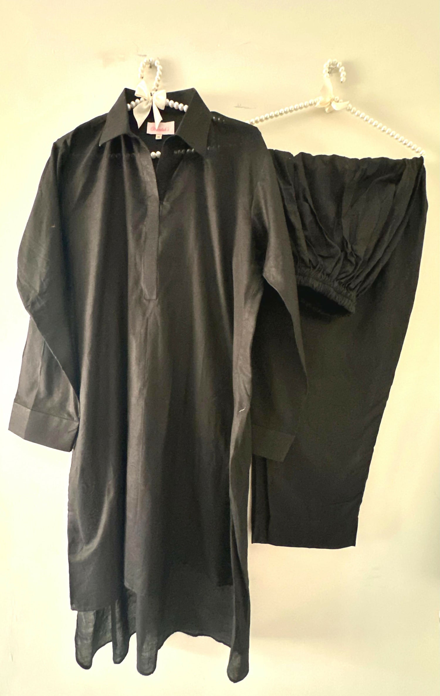 | MATERIAL & MEASUREMENT | 🖤 Color: Deep black 👗 Fabric: Premium breathable cotton 📏 Sizes: All standard sizes available 🧵 Custom Fit: Made-to-order tailoring for the perfect fit |