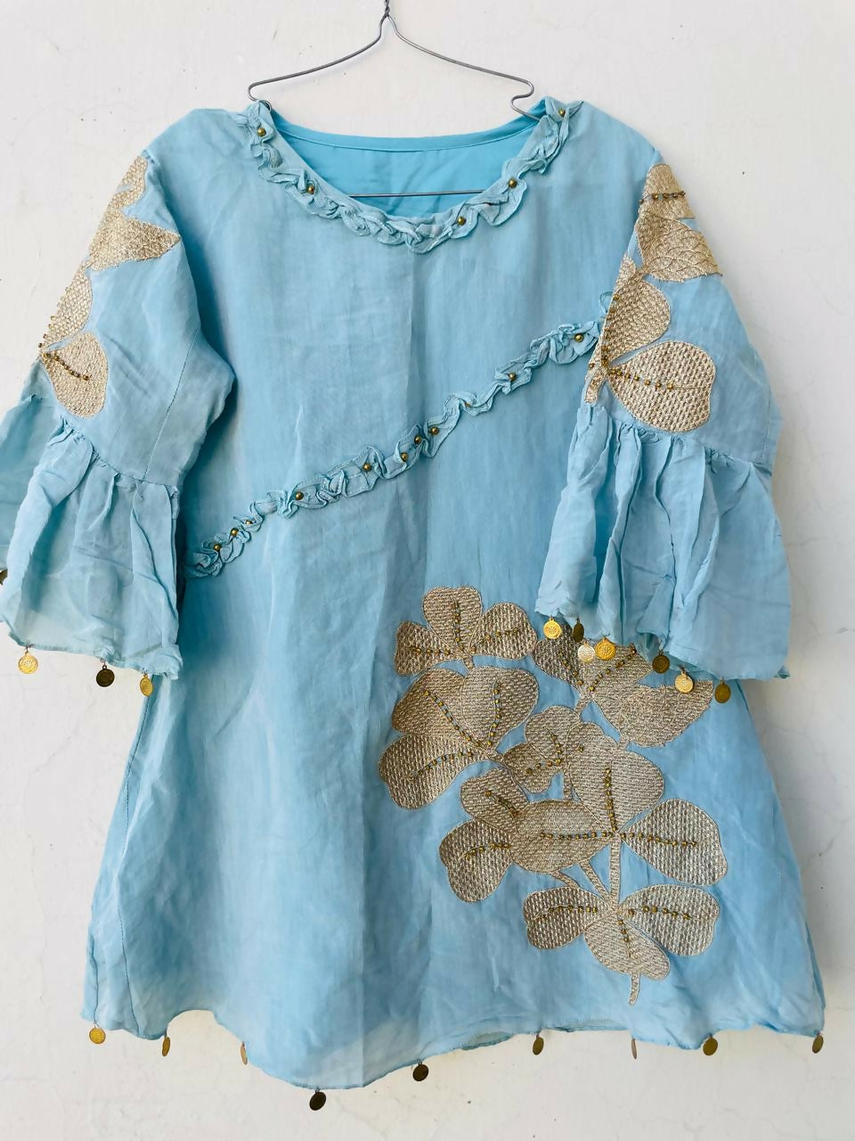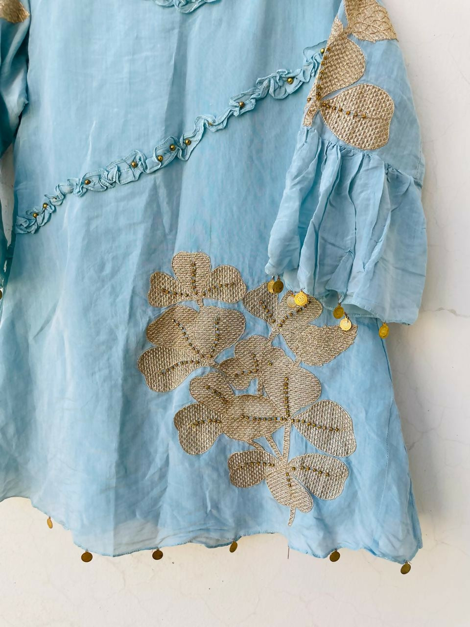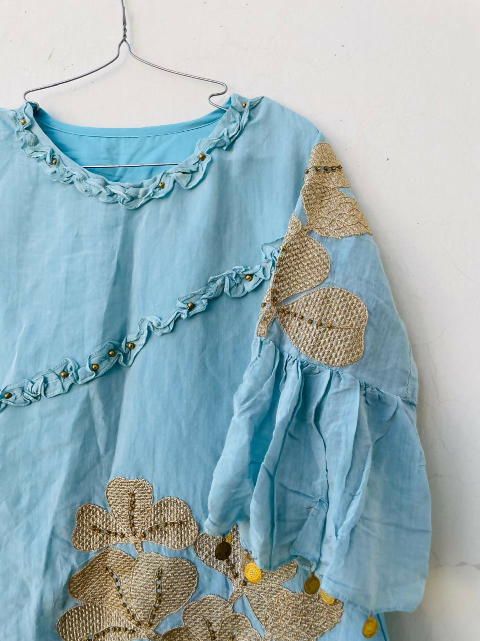 Sky Blue Embroidered Kurta | Women Locally Made Kurta | Small | Worn Once