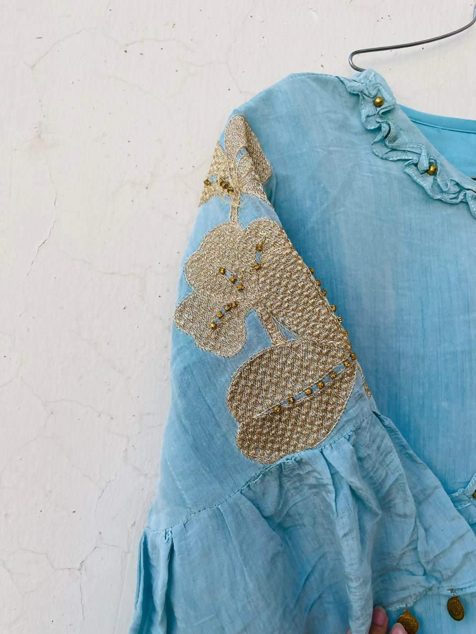 Sky Blue Embroidered Kurta | Women Locally Made Kurta | Small | Worn Once is backordered and will ship as soon as it is back in stock.