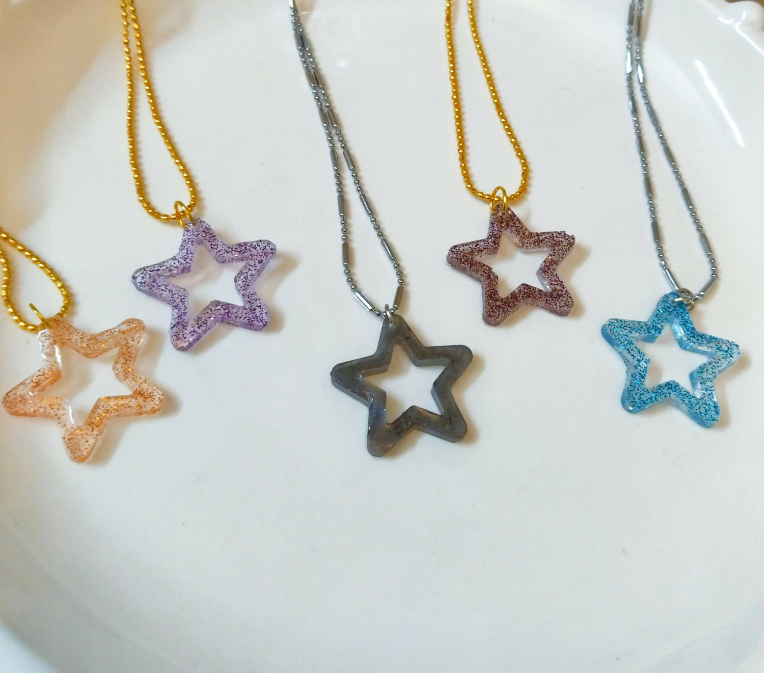 Star Resin Pendant | Women Jewelry | Medium | New - Blue / Golden chain is backordered and will ship as soon as it is back in stock.