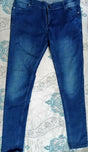 Blue stretchable jeans featuring front and back pockets, with a delicate floral pattern on the front pocket for a stylish touch. Made from comfortable, flexible fabric that allows easy movement. Hardly worn and in excellent condition, perfect for everyday casual wear.