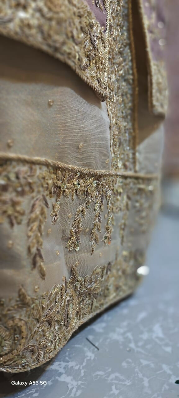 | MATERIAL & MEASUREMENT | Fabric: Net Designed on Net Kora n stone work Measurement : Shoulder 15 ½ Chest 23 Arm hole 10 ,front 4½ Length 57 |