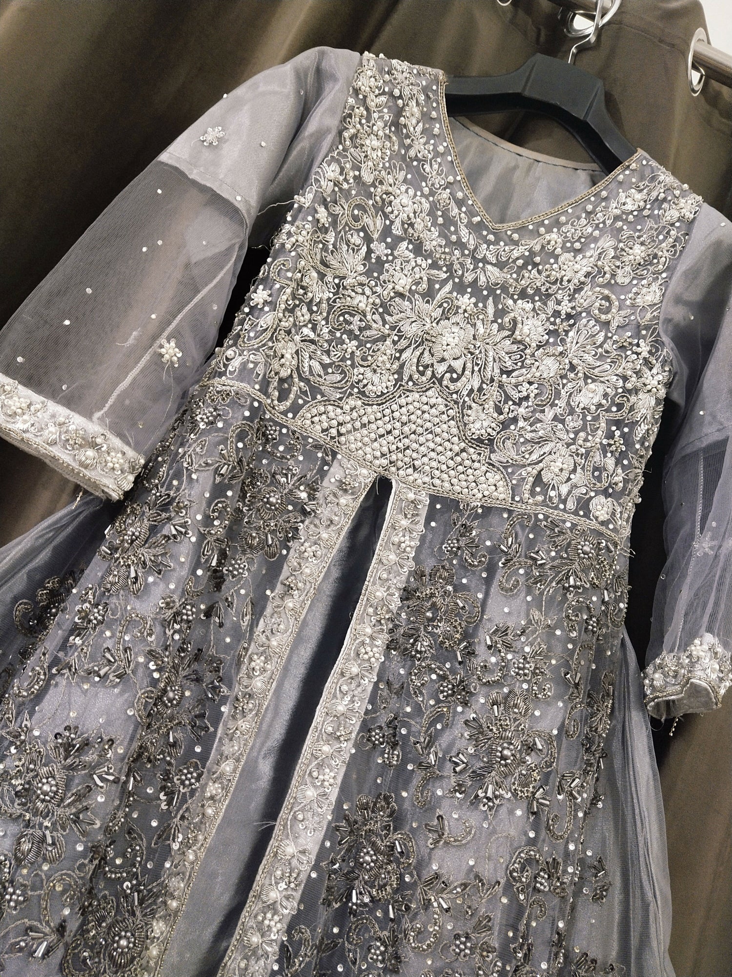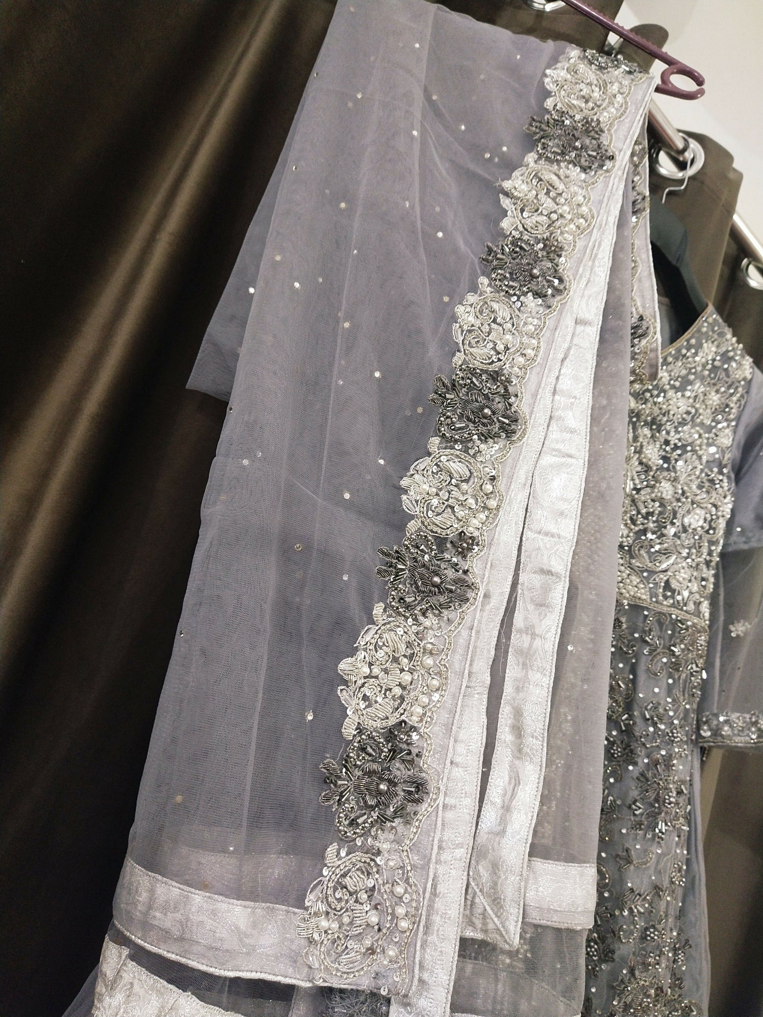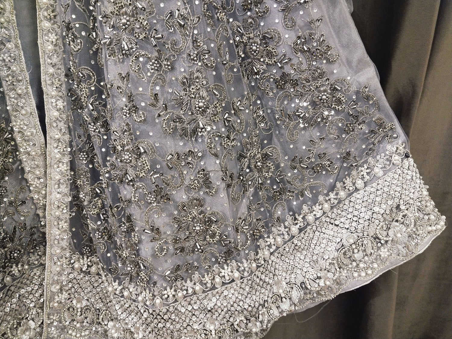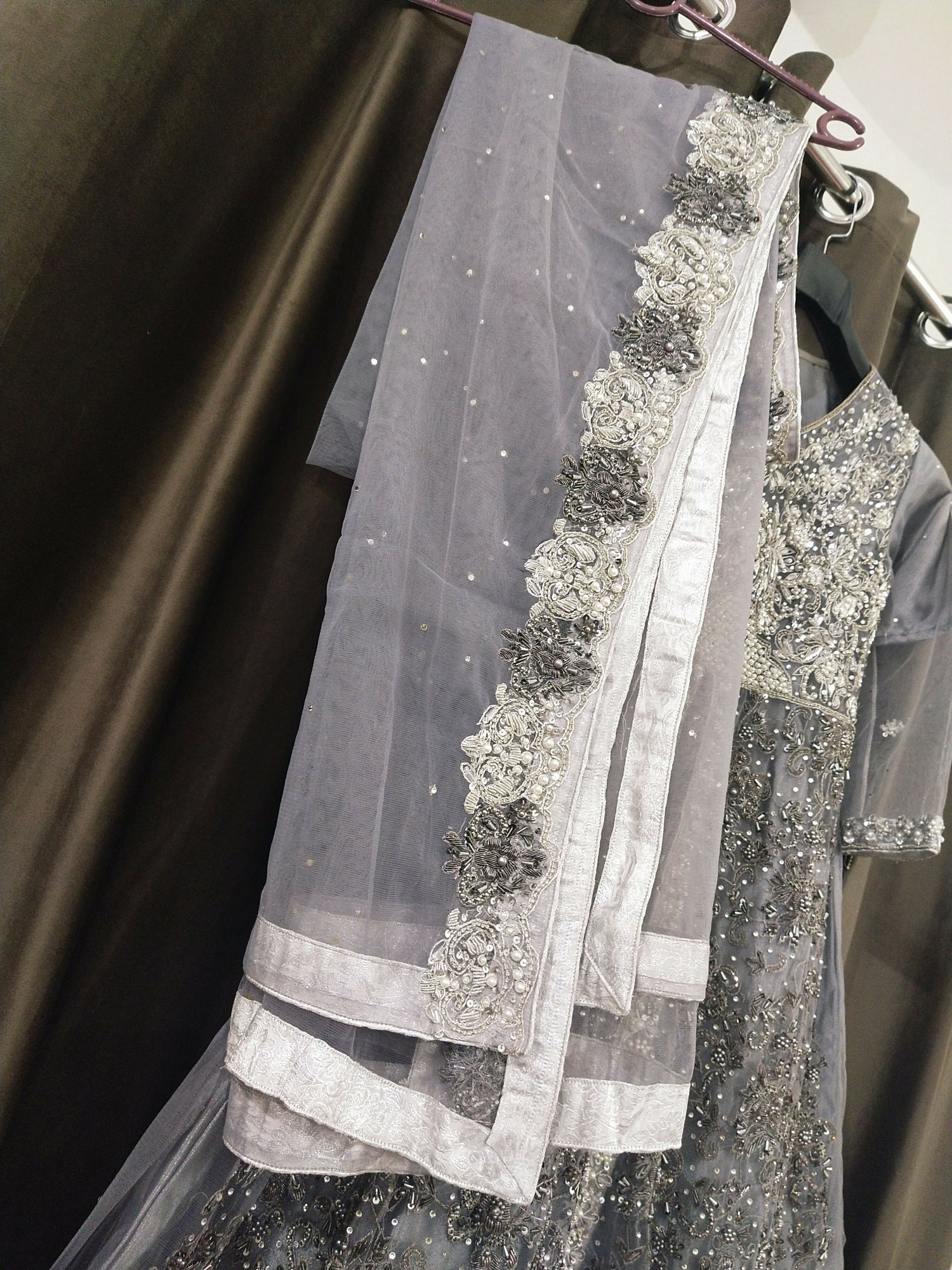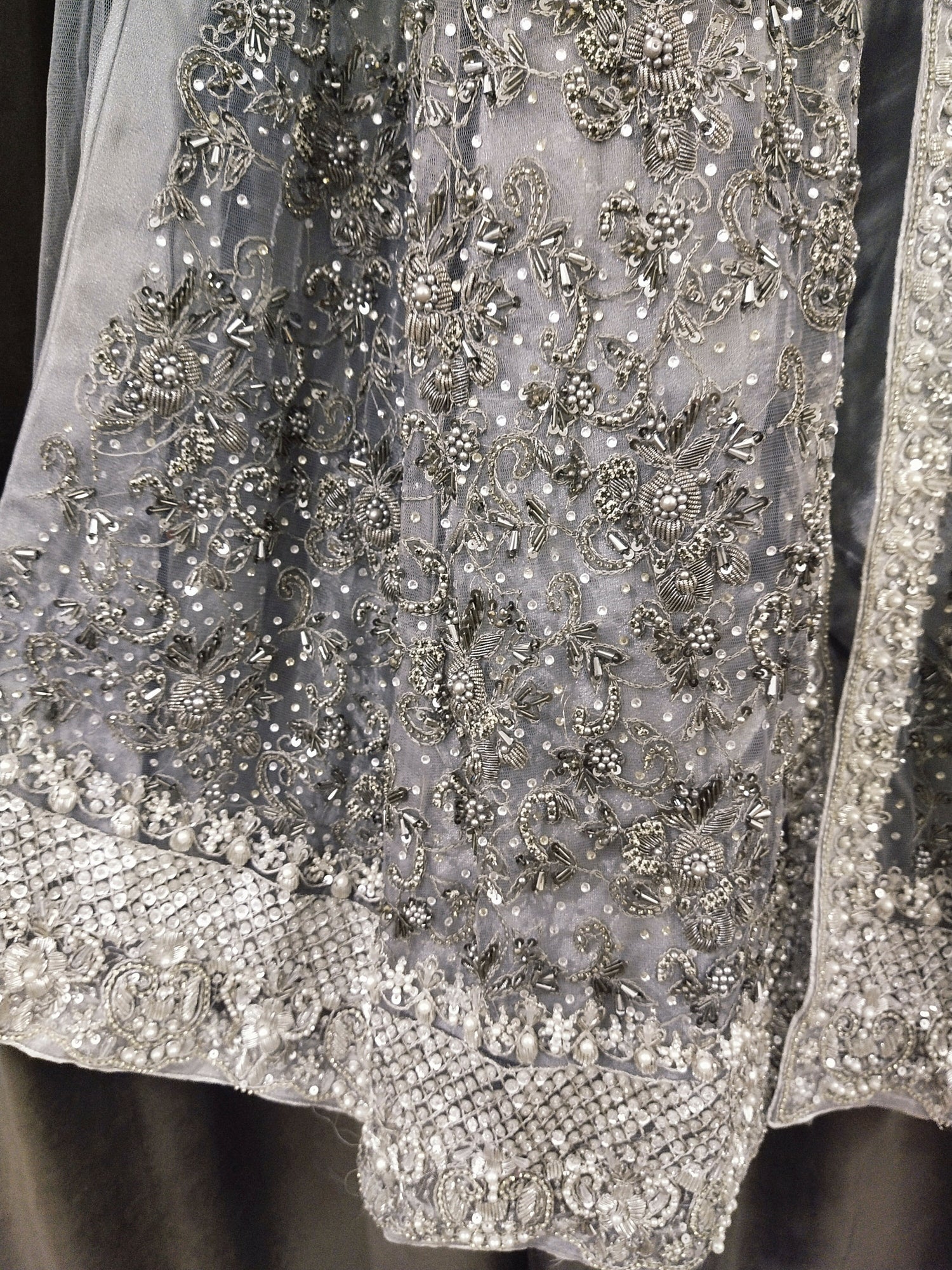 | MATERIAL & MEASUREMENT | Stuff net Maxi length 59 Shoulder 14 Lehnga length 39 Trouser 37 bell bottom With ken ken Dopatta net Condition 10/10 |