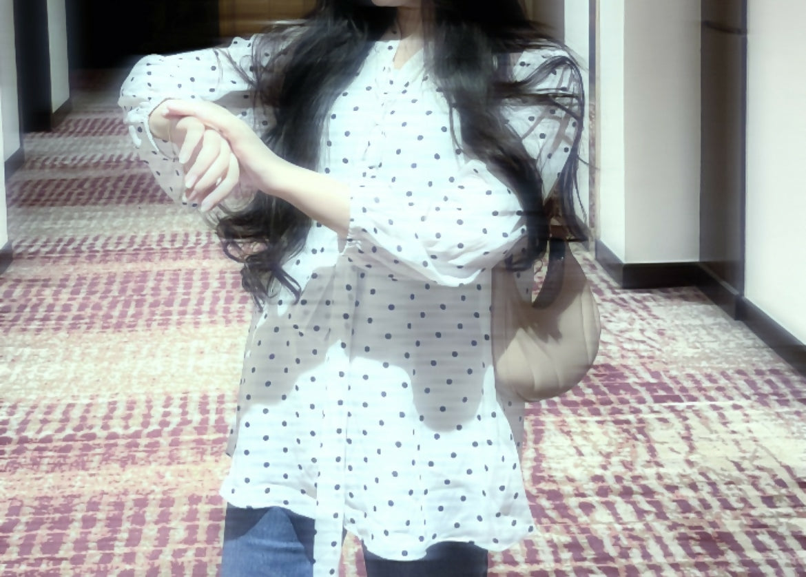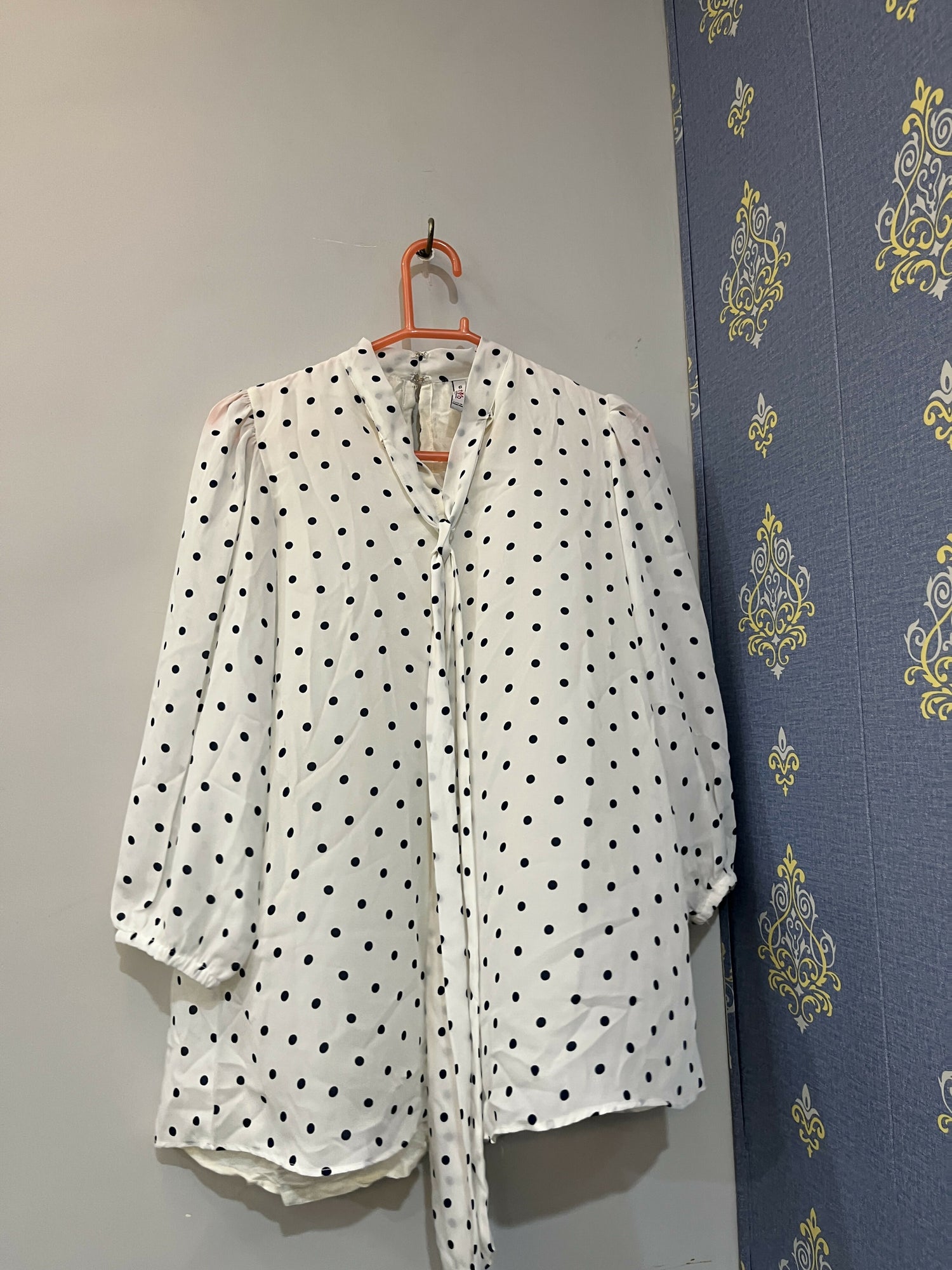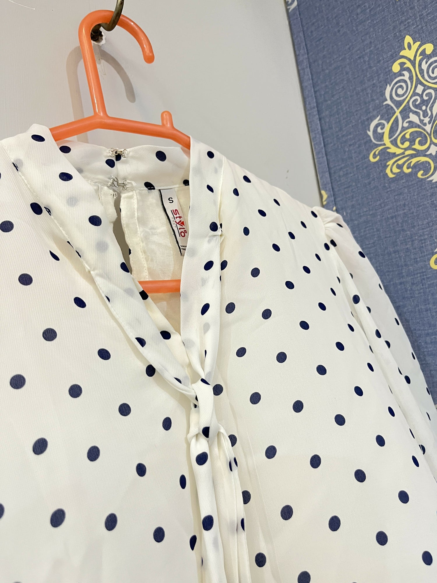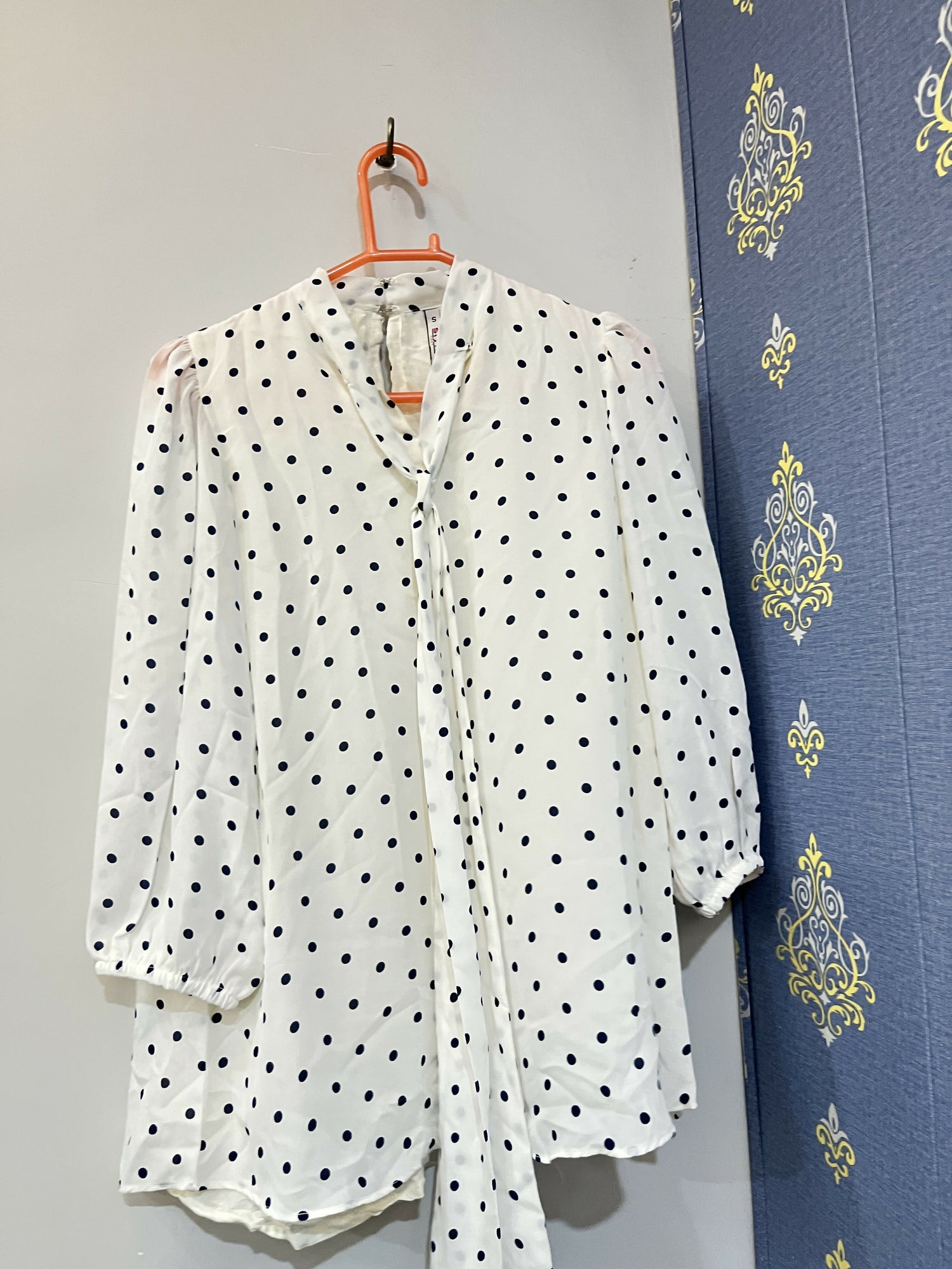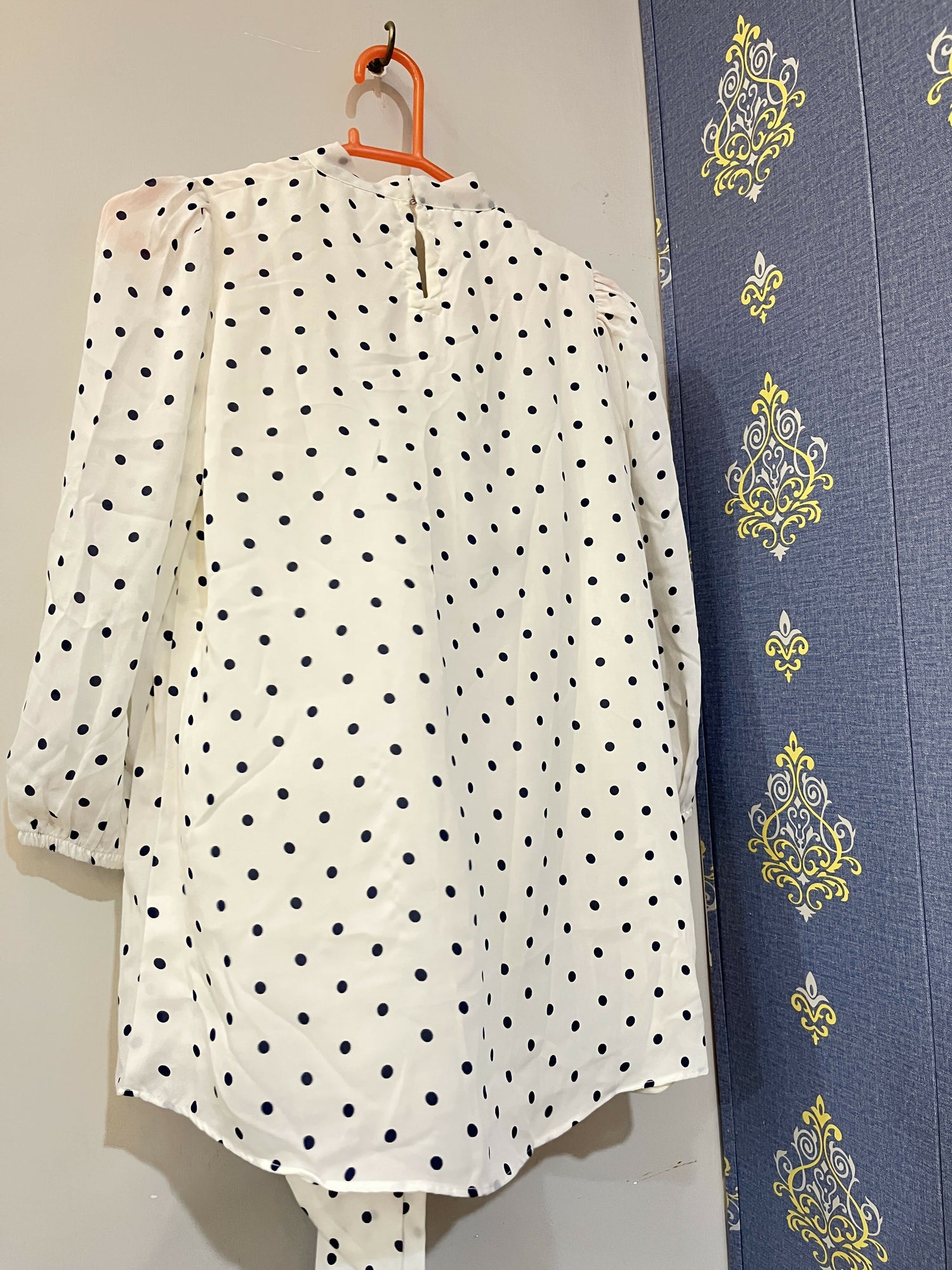 Color : White with Blue Polka dots